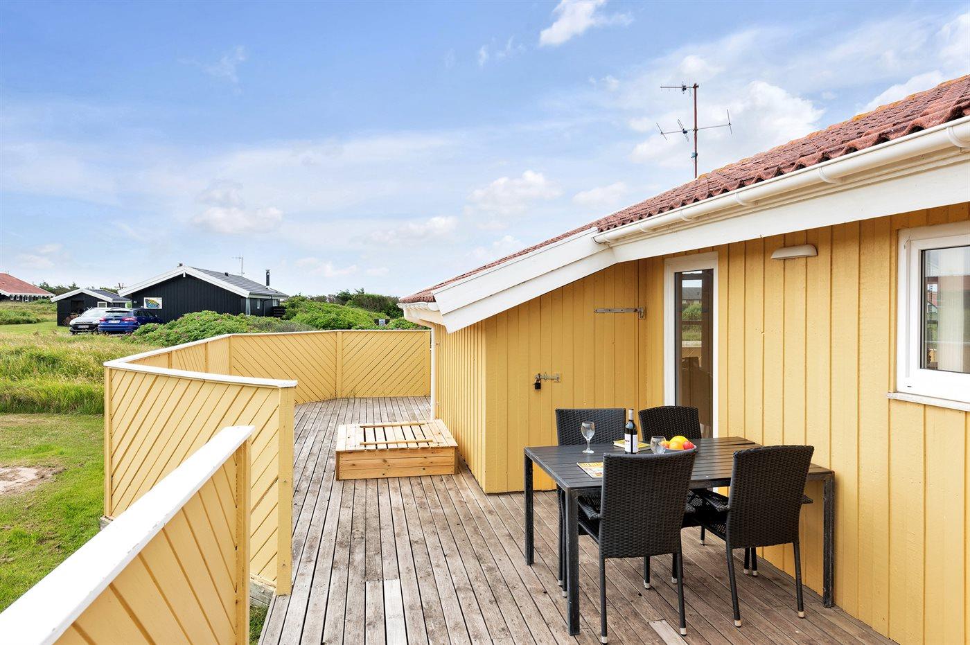 Ferieboligen er beliggende på en 1300 m² stor havegrund. Der er 200 m til havet. Nærmeste forretning er beliggende i en afstand af 1000 m. Til ferieboligen hører i alt 60 m² lukket terrasse. Heraf er 10 m² overdækket. Gynge. Sandkasse. Grill til rådighed. Parkering ved ferieboligen.