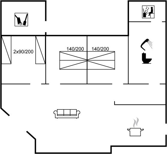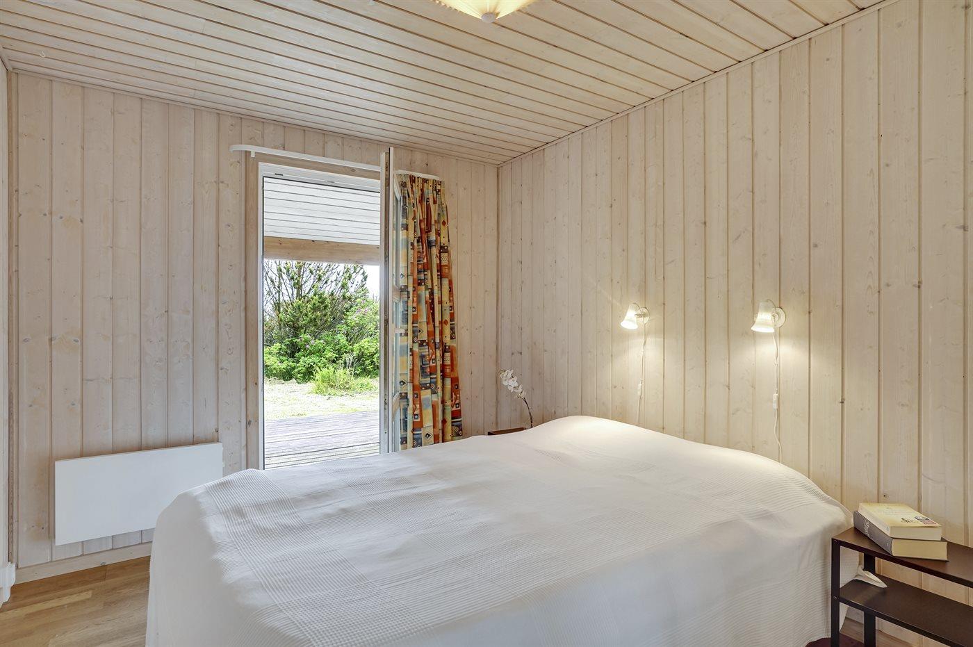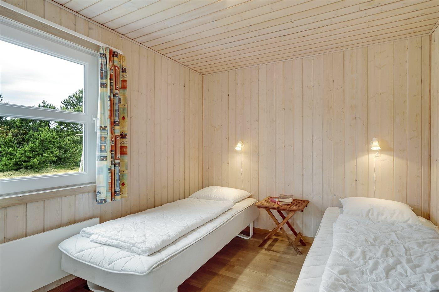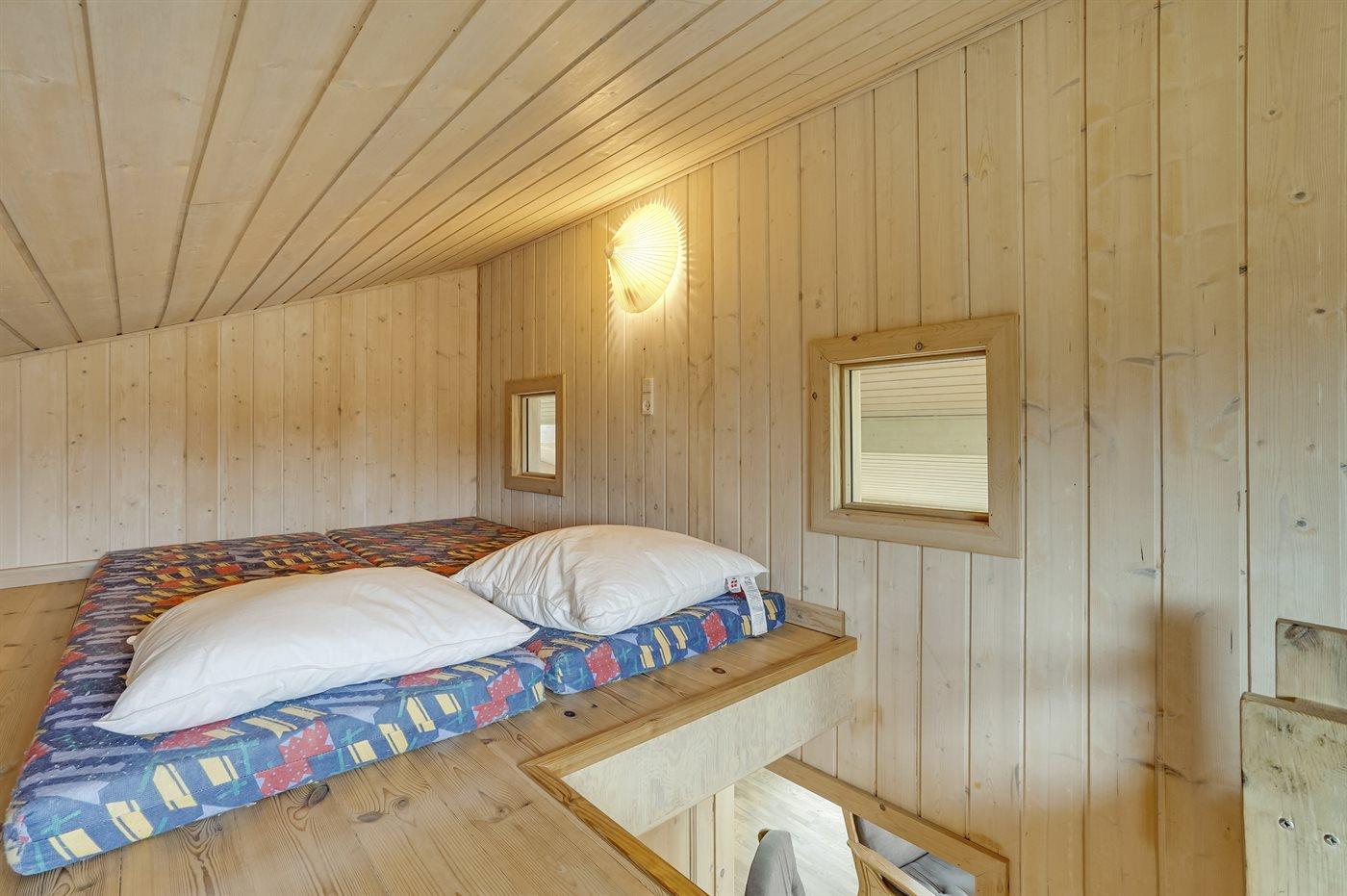 Der er i alt 3 soveværelser. Sovepladserne fordeler sig på: 4 sovepladser i dobbeltsenge. 2 sovepladser i enkeltsenge. 2 sovepladser på madrasser. 2 af disse sovepladser befinder sig på husets hems.