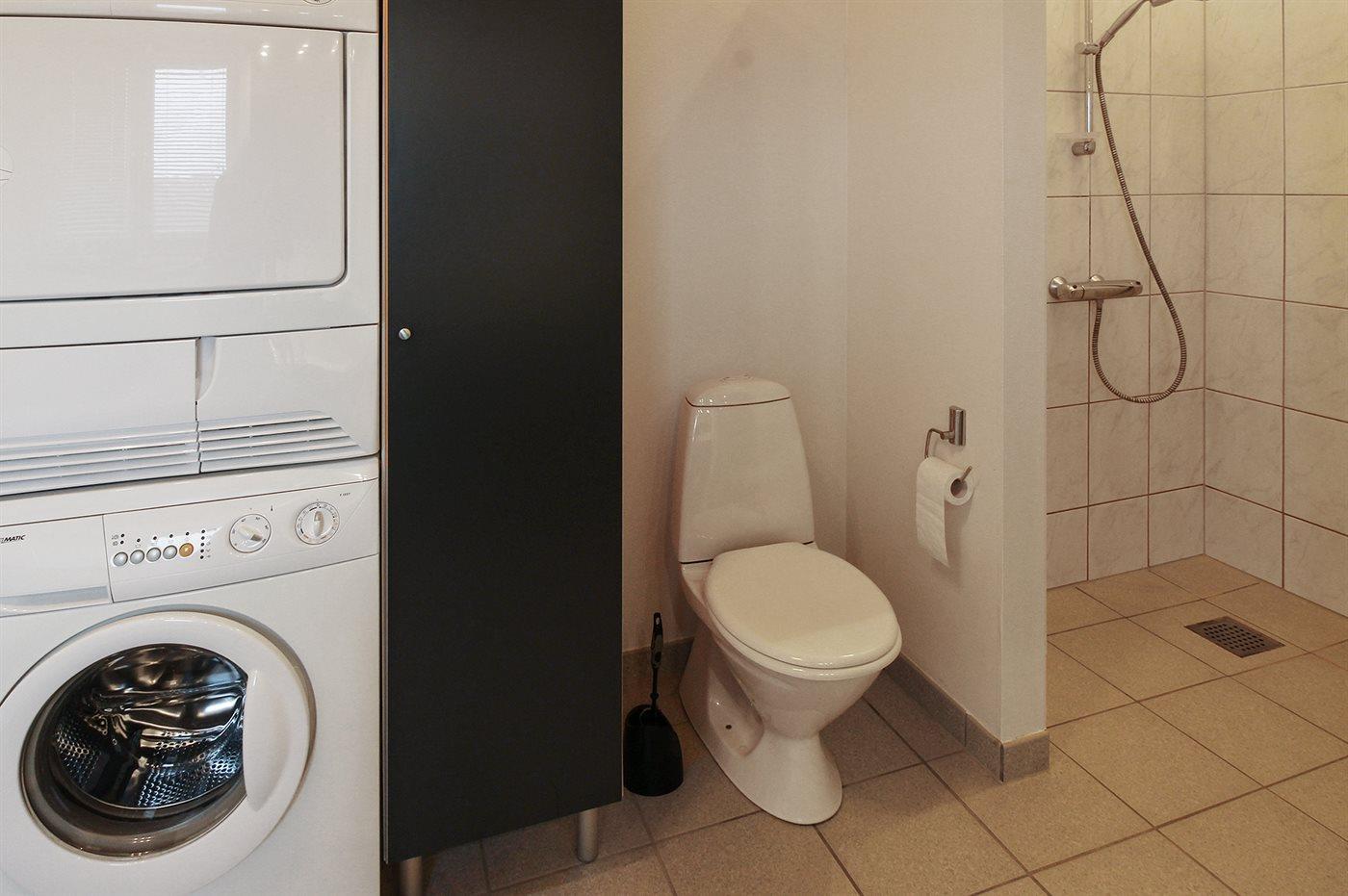 Der er 2 badeværelser med bruseniche og 2 toiletter. Der er gulvvarme på 2 badeværelser. I saunaen er der mulighed for afslapning.