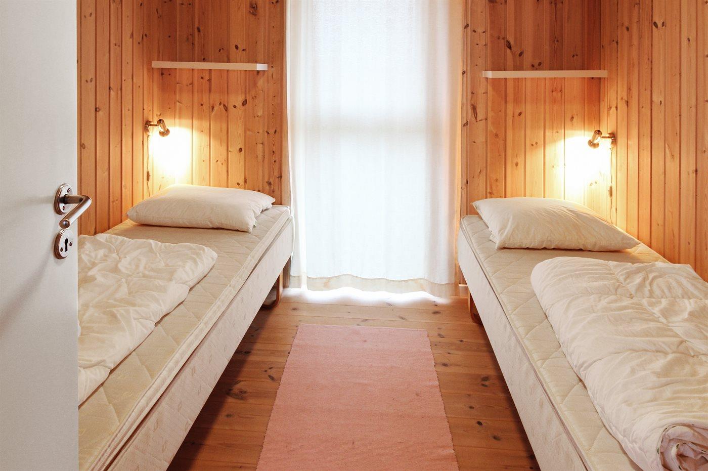 Der er i alt 3 soveværelser. Sovepladserne fordeler sig på: 4 sovepladser i dobbeltsenge. 2 sovepladser i enkeltsenge.