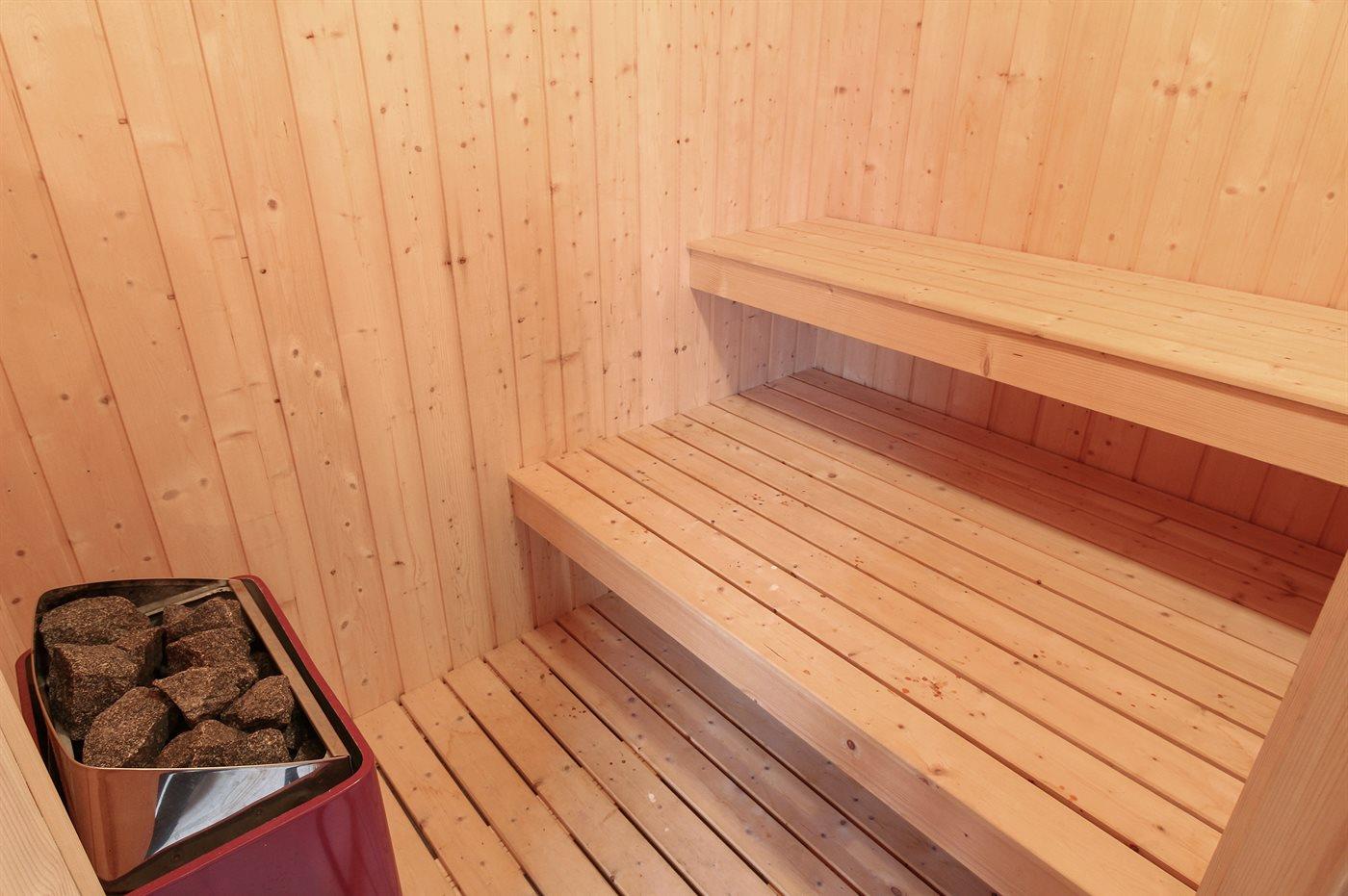 Der er 1 badeværelse med bruseniche og 1 toilet.. Der er gulvvarme på 1 badeværelse. I saunaen er der mulighed for afslapning.