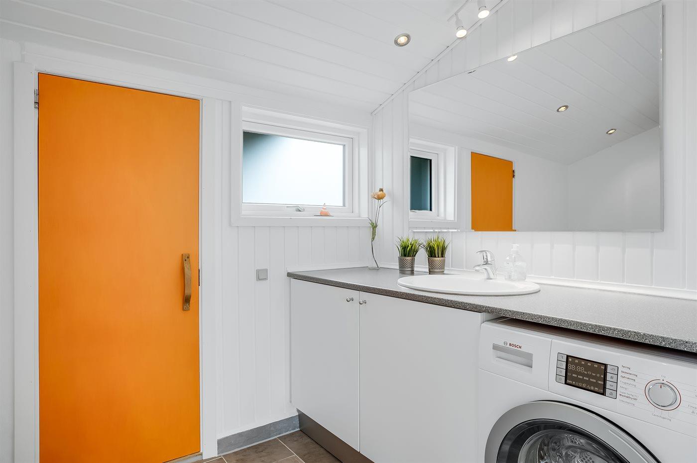 Der er 2 badeværelser med bruseniche og 2 toiletter. Der er gulvvarme på 2 badeværelser. I saunaen er der mulighed for afslapning.