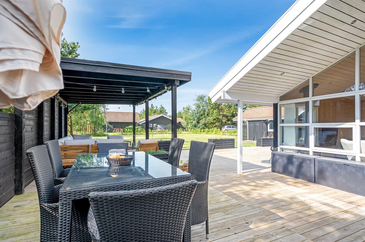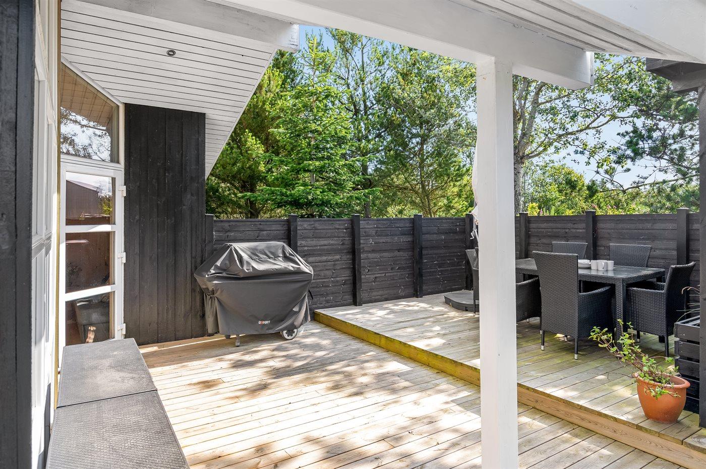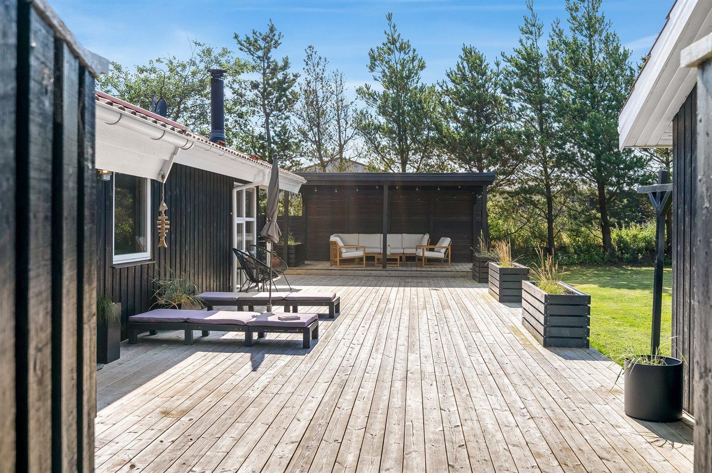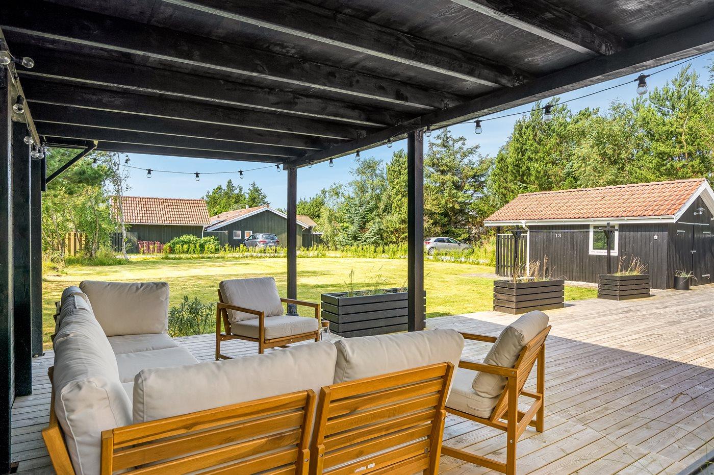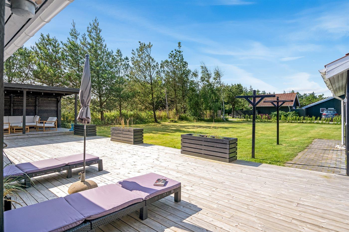 Ferieboligen er beliggende på en 1400 m² stor havegrund. Der er 900 m til havet. Nærmeste forretning er beliggende i en afstand af 1000 m. Der er en golfbane i en afstand af 5000 m. Til ferieboligen hører 20 m² terrasseareal. Desuden er der 10 m² overdækket terrasse. Grill til rådighed. Der er installeret stik til opladning af elbil. Type 2 stik. Med 11 kW ladeeffekt. Parkering ved ferieboligen.