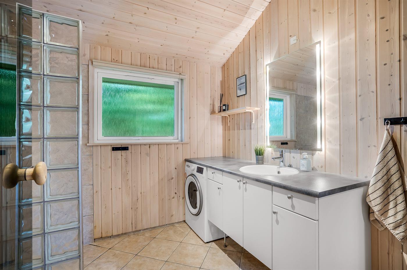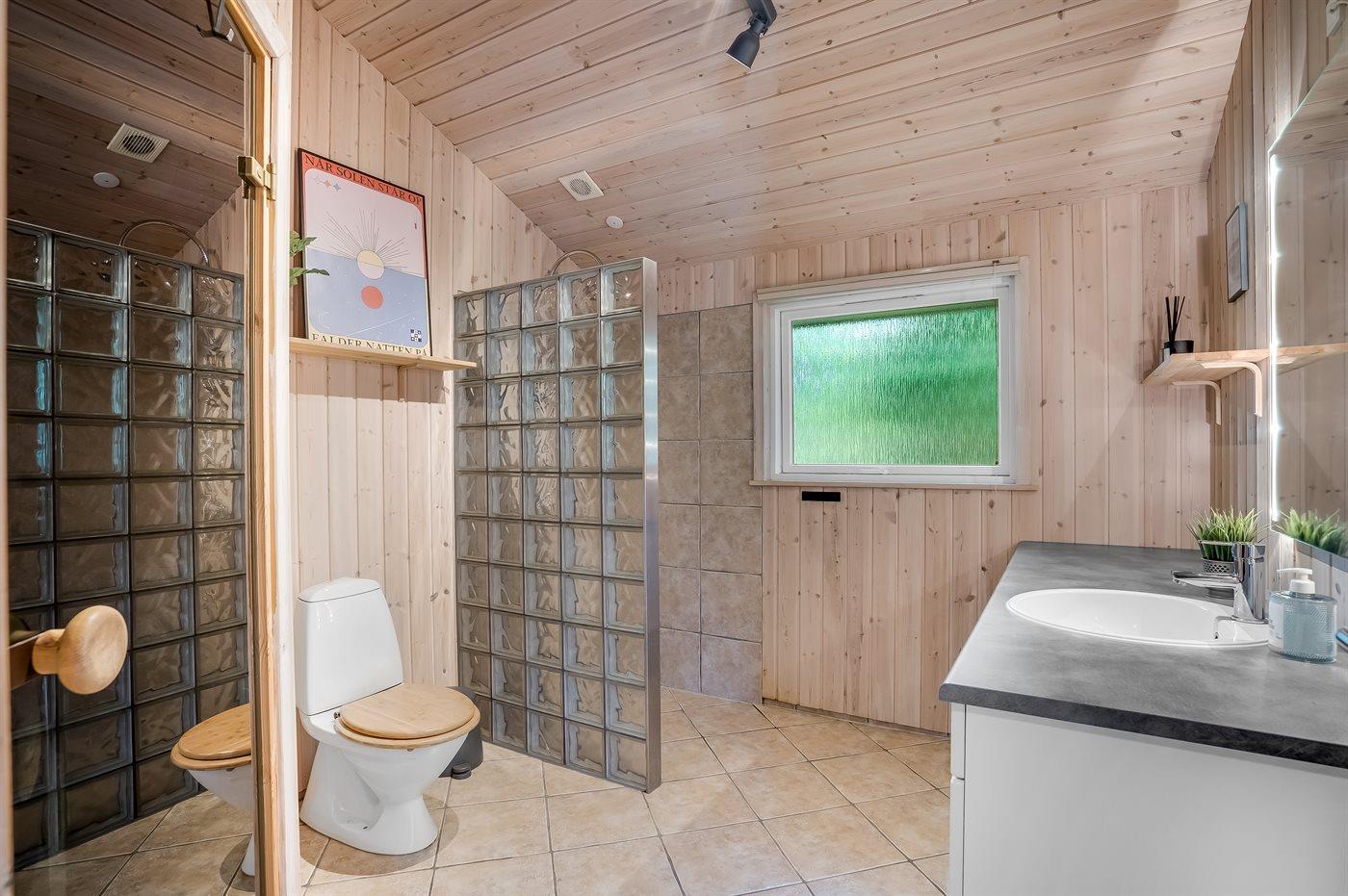 Der er 1 badeværelse med bruseniche og 1 toilet.. Der er gulvvarme på 1 badeværelse. I saunaen er der mulighed for afslapning.