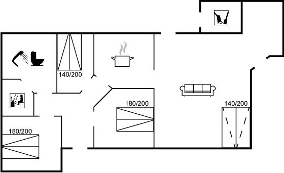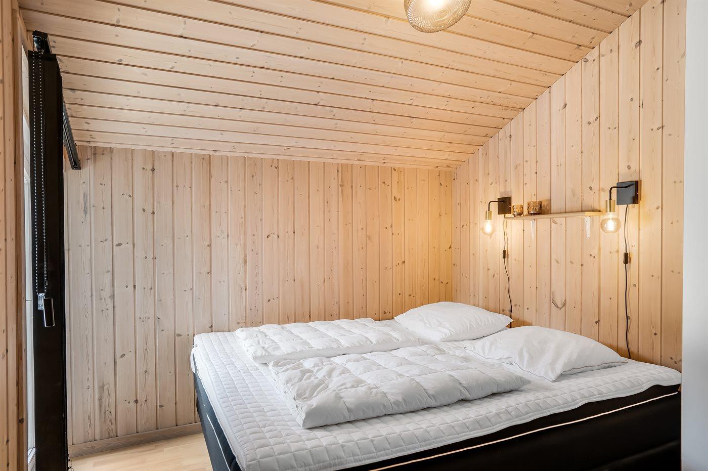 Der er i alt 3 soveværelser. Sovepladserne fordeler sig på: 4 sovepladser i dobbeltsenge. 2 sovepladser i køjeseng. 2 sovepladser i sovesofa (dobbelt). Derudover er der 1 stk. barneseng.