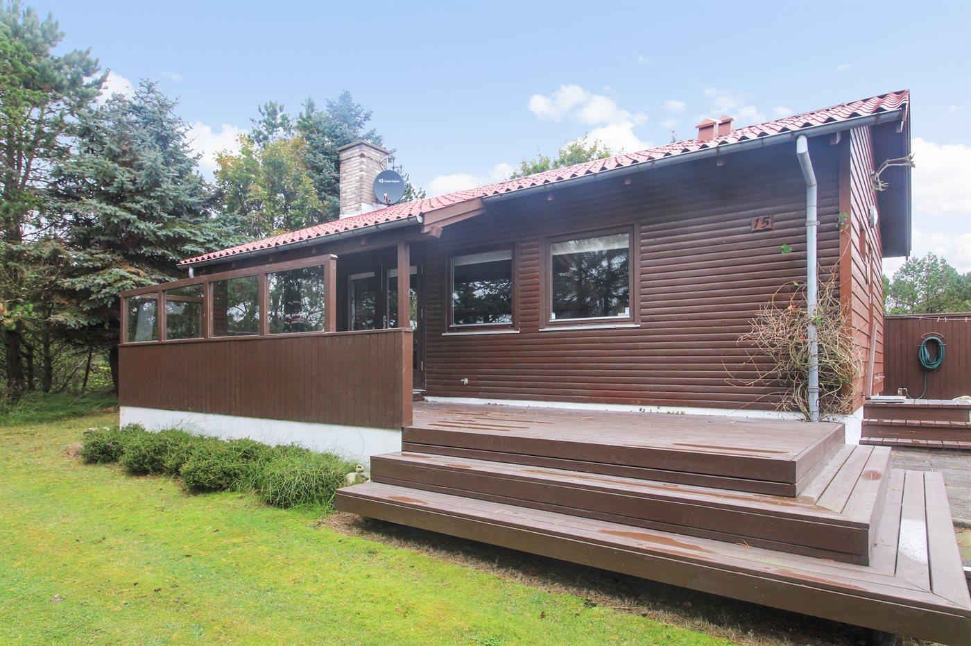 Med dejlig sydvendt terrasse i læ af fyr- og granbevoksning finder du dette mindre og prismæssigt interessante sommerhus.