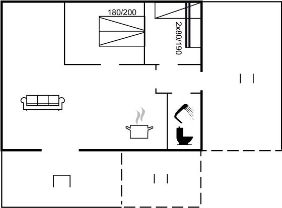 Der er i alt 2 soveværelser. Sovepladserne fordeler sig på: 2 sovepladser i dobbeltseng. 2 sovepladser i enkeltsenge.
