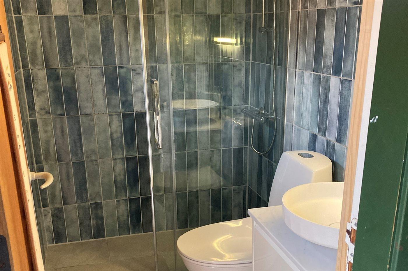 Der er 1 badeværelse med bruseniche og 1 toilet.. Der er gulvvarme på 1 badeværelse.