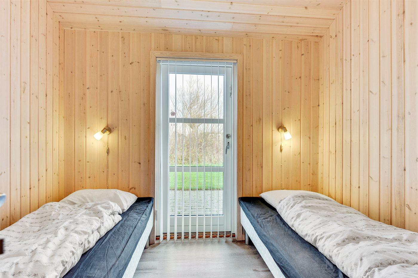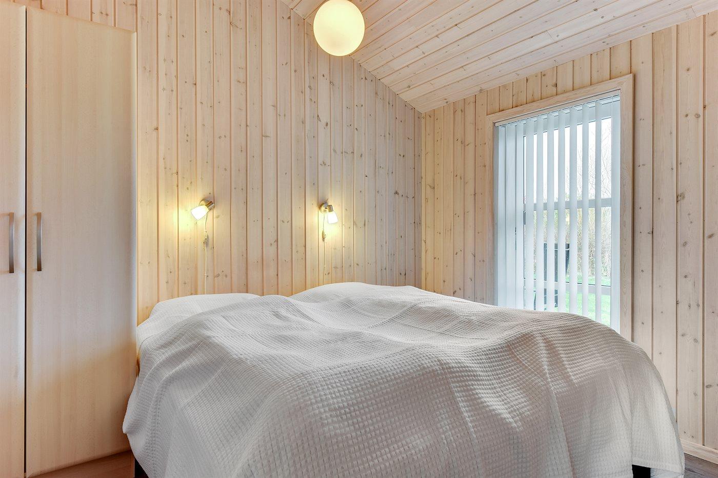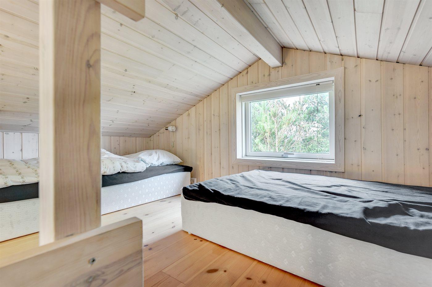 Der er i alt 3 soveværelser. Sovepladserne fordeler sig på: 4 sovepladser i dobbeltsenge. 2 sovepladser i enkeltsenge. 2 sovepladser på madrasser. 2 af disse sovepladser befinder sig på husets hems.