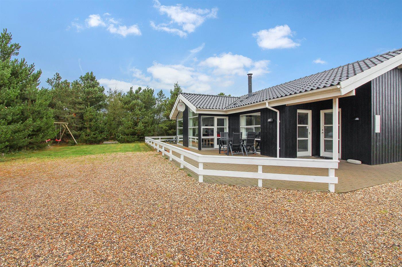 Ferieboligen er beliggende på en 1200 m² stor naturgrund. Der er 900 m til havet. Nærmeste forretning er beliggende i en afstand af 1000 m. Til ferieboligen hører 90 m² terrasseareal. Gynge. Sandkasse. Parkering ved ferieboligen.