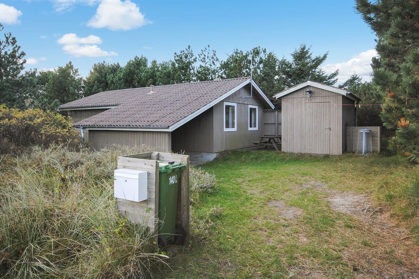 Ferieboligen er beliggende på en 1200 m² stor naturgrund. Der er 800 m til havet. Nærmeste forretning er beliggende i en afstand af 800 m. Til ferieboligen hører 50 m² terrasseareal. Desuden er der 30 m² overdækket terrasse. Der er redskabsrum. Parkering ved ferieboligen.