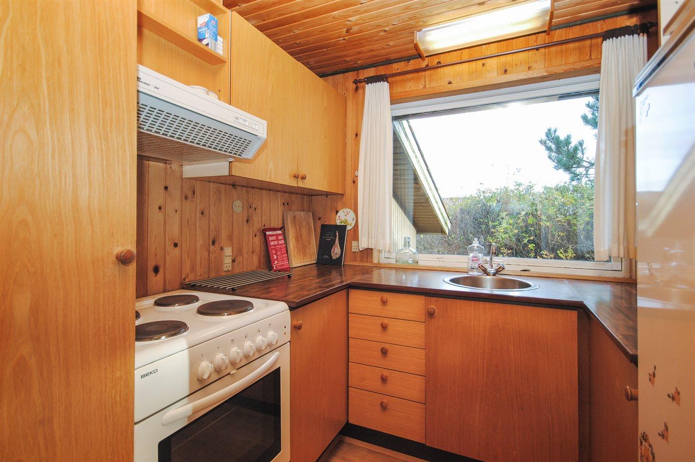 Køkkenet er udstyret med 1 køleskab. Der er 4 elkogeplader, bageovn.