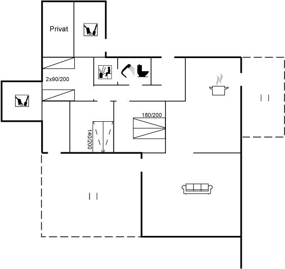 Der er 1 badeværelse med bruseniche og 1 toilet.. Der er gulvvarme på 1 badeværelse. I saunaen er der mulighed for afslapning.