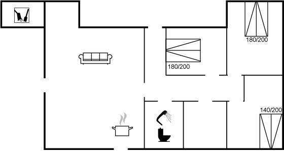 Soveværelse med 180 cm boxmadras og Sat-TV. Soverum med 140 cm boxmadras. Barneseng. Nyt badeværelse (2016) med WC, håndvask, bruser og gulvvarme. Bryggers med VASKEMASKINE og TØRRETUMBLER samt ekstra køleskab med 70 l. fryser.
