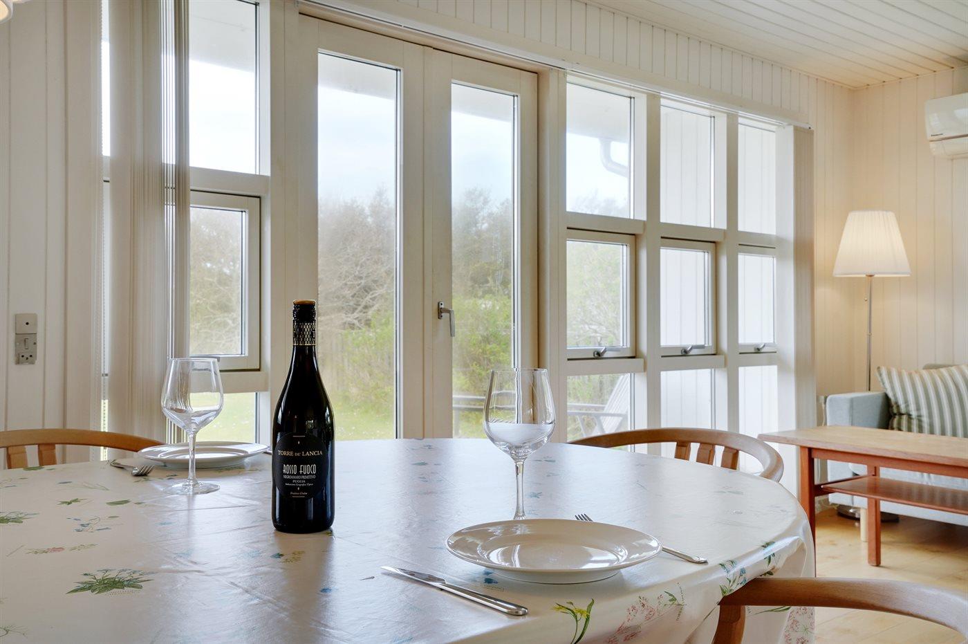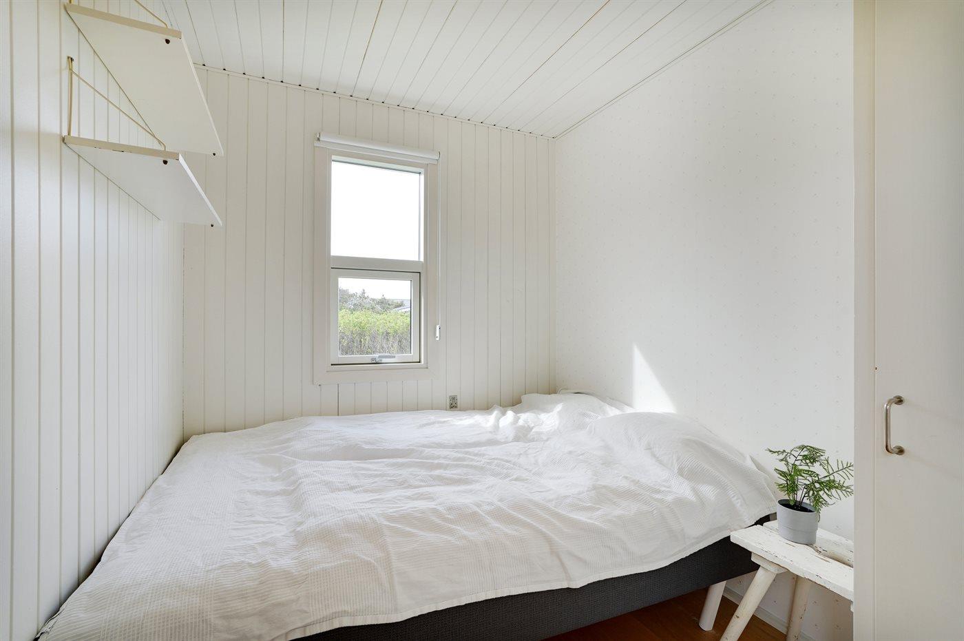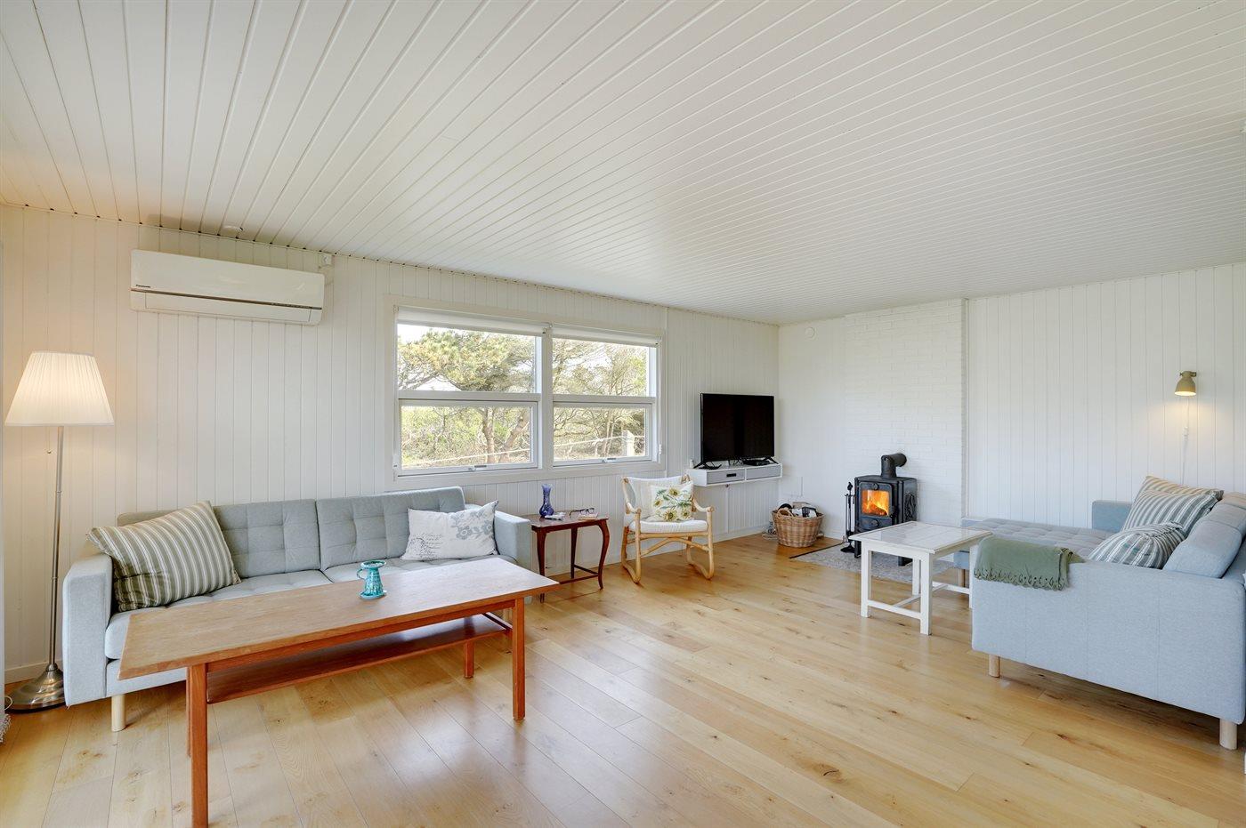 I læ af ege- og hybenkrat finder du dette smagfuldt indrettede sommerhus. Huset ligger kun ca. 150 m fra Klitmøllers bedste badestrand.