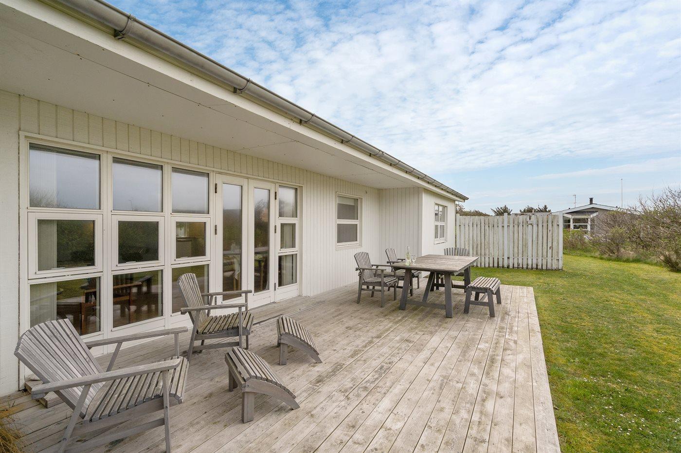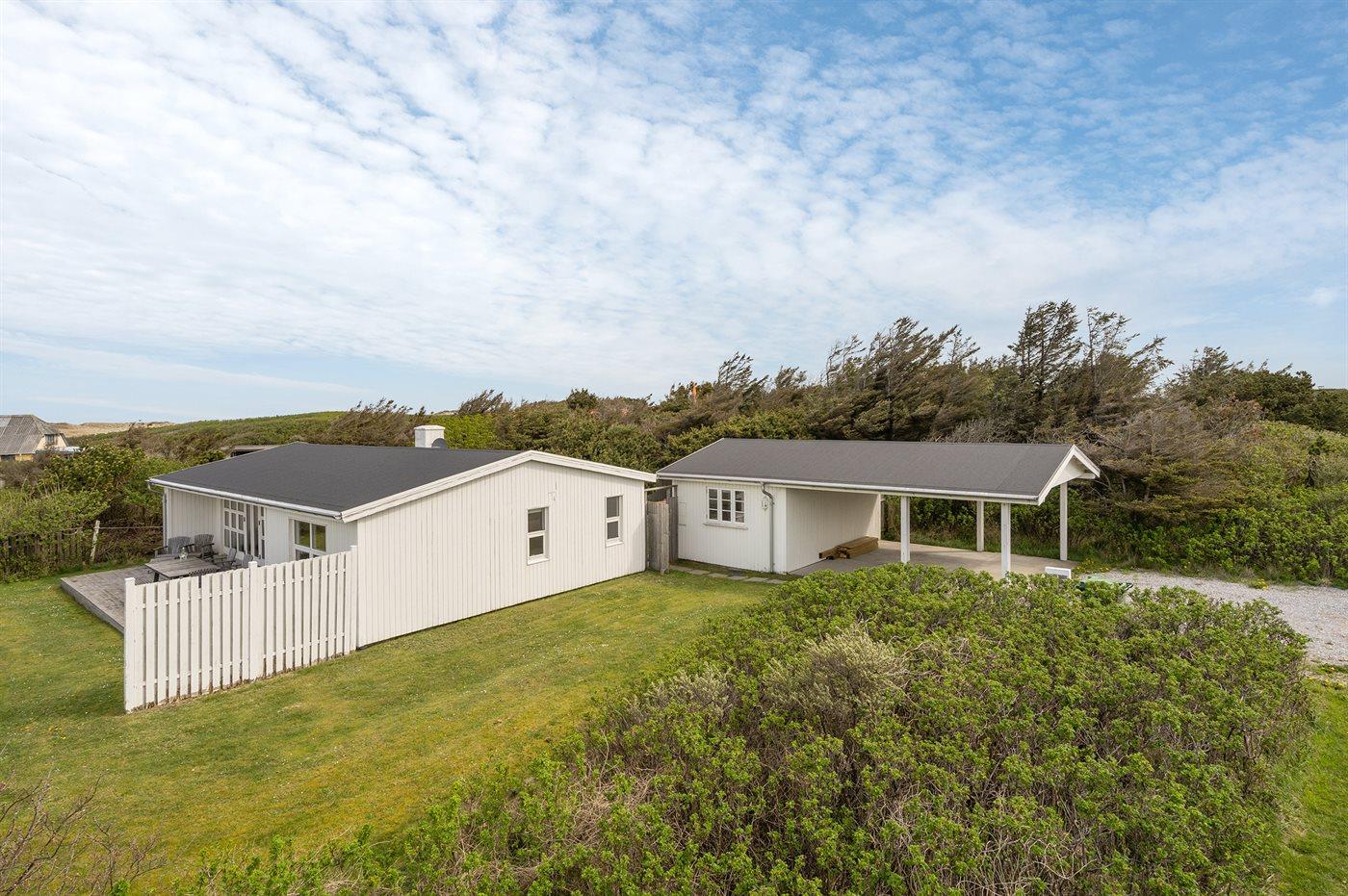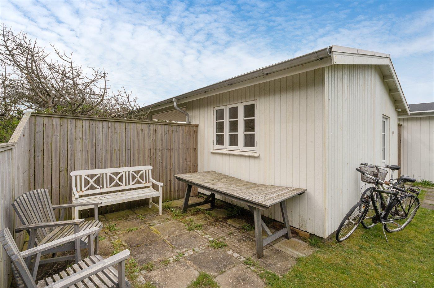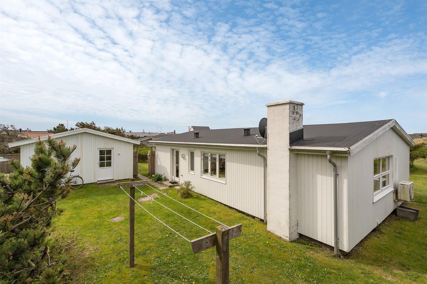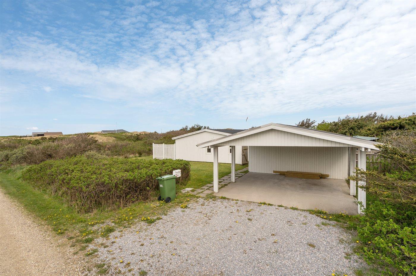 Ferieboligen er beliggende på en 1400 m² stor havegrund. Der er 150 m til havet. Nærmeste forretning er beliggende i en afstand af 1000 m. Til ferieboligen hører 48 m² terrasseareal. Der er redskabsrum. Der er carport til rådighed. Parkering ved ferieboligen.