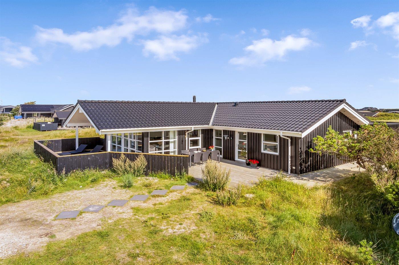 Flot nybygget sommerhus nær Klitmøllers bedste badestrand med havudsigt og spa.