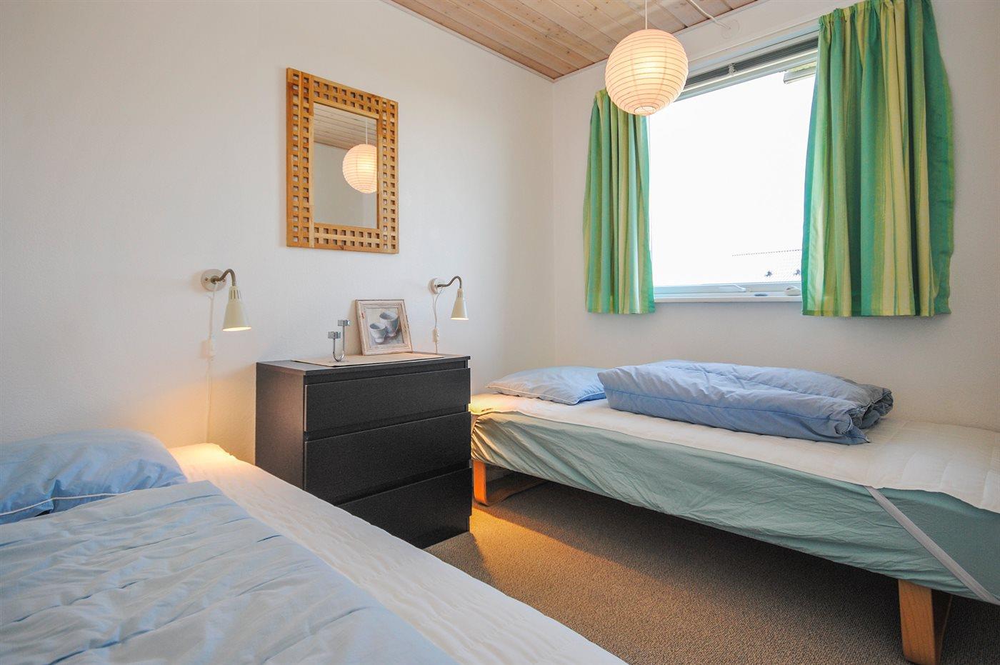 Der er i alt 3 soveværelser. Sovepladserne fordeler sig på: 2 sovepladser i dobbeltseng. 4 sovepladser i enkeltsenge. 2 sovepladser i køjeseng. Derudover er der 1 stk. barneseng.