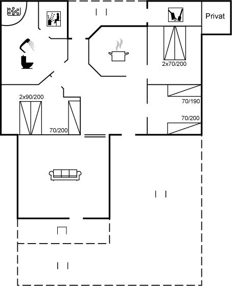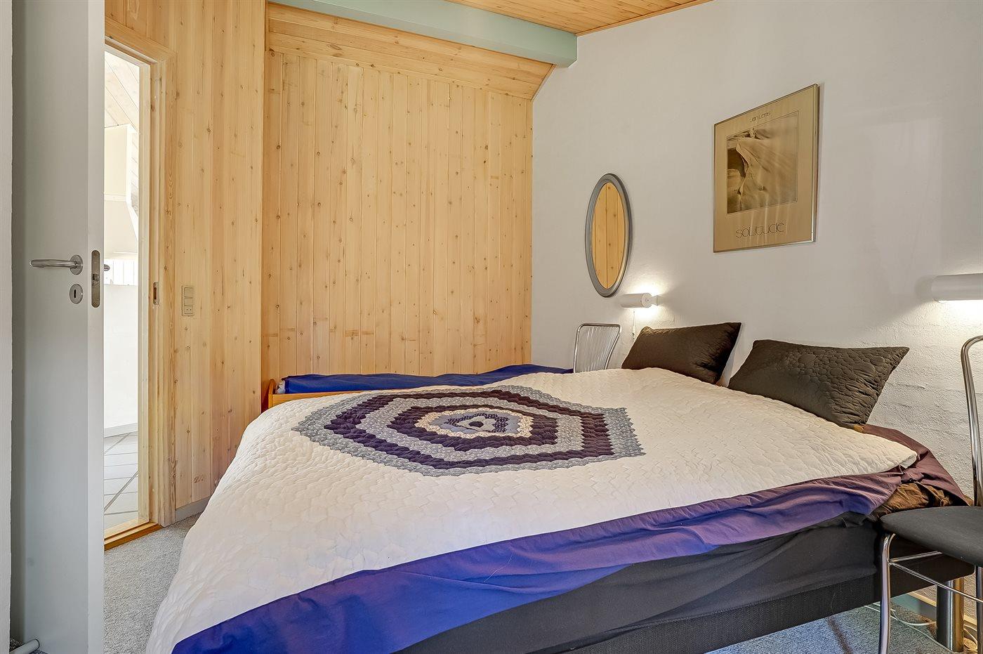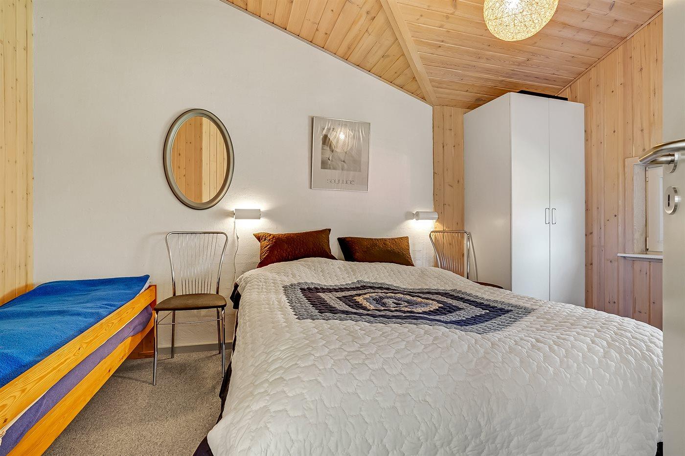 Der er i alt 3 soveværelser. Sovepladserne fordeler sig på: 4 sovepladser i dobbeltsenge. 3 sovepladser i enkeltsenge. Derudover er der 1 stk. barneseng.
