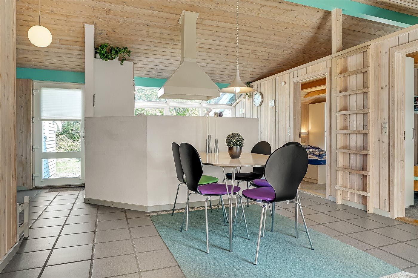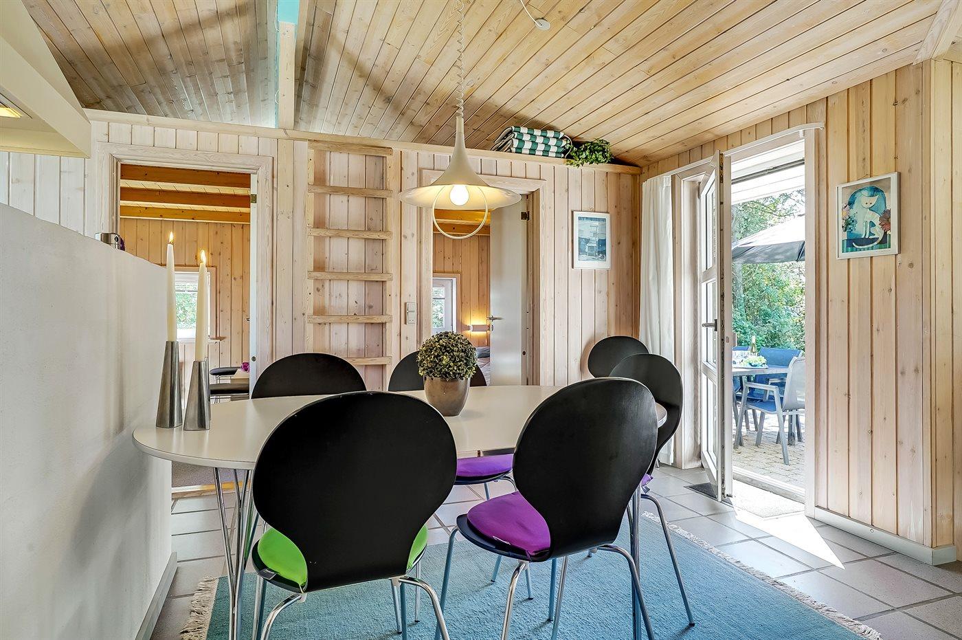 Sommerhuset egner sig til 7 personer samt 1 barn op til 3 år. 1 af sovepladserne er kun egnet til større børn (4-11 år). Ferieboligen er på 111 m² og er bygget i 1991. Det er tilladt at medbringe 1 husdyr. Ferieboligen er udstyret med energibesparende varmepumpe. Ferieboligen har vaskemaskine. Tørretumbler. Frysekapacitet på 65 liter. Der er desuden brændeovn. Til de små er der 1 stk. barnestol.