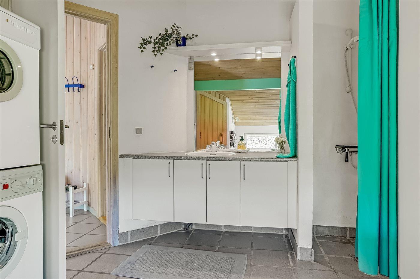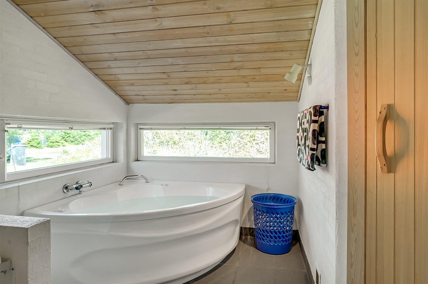 Der er 1 badeværelse med bruseniche og 1 toilet.. Der er gulvvarme på 1 badeværelse. I saunaen er der mulighed for afslapning.