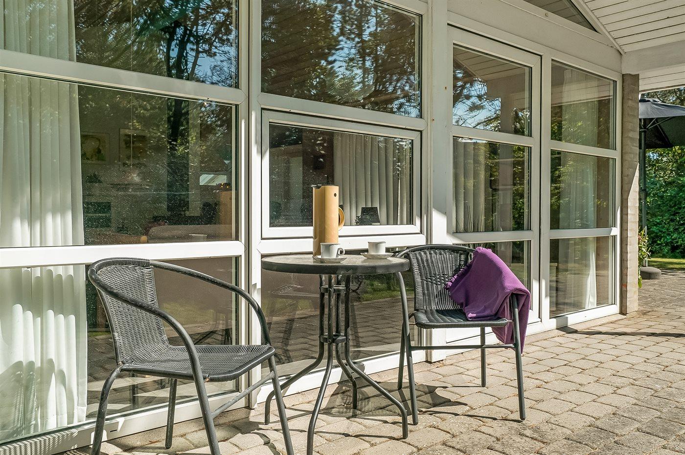 Ferieboligen er beliggende på en 1300 m² stor havegrund. Der er 350 m til havet. Nærmeste forretning er beliggende i en afstand af 900 m. Til ferieboligen hører 40 m² terrasseareal. Der er redskabsrum. Parkering ved ferieboligen.