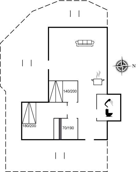 Der er i alt 3 soveværelser. Sovepladserne fordeler sig på: 4 sovepladser i dobbeltsenge. 2 sovepladser i køjeseng.