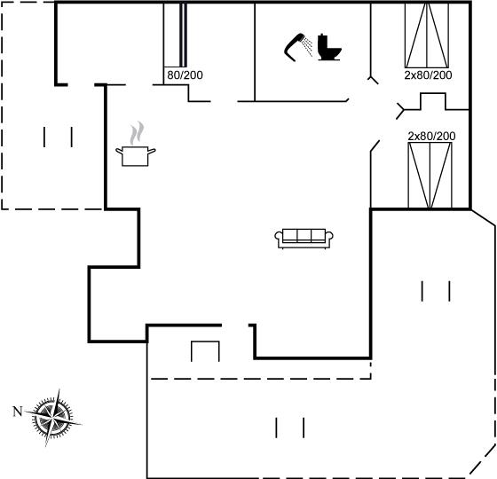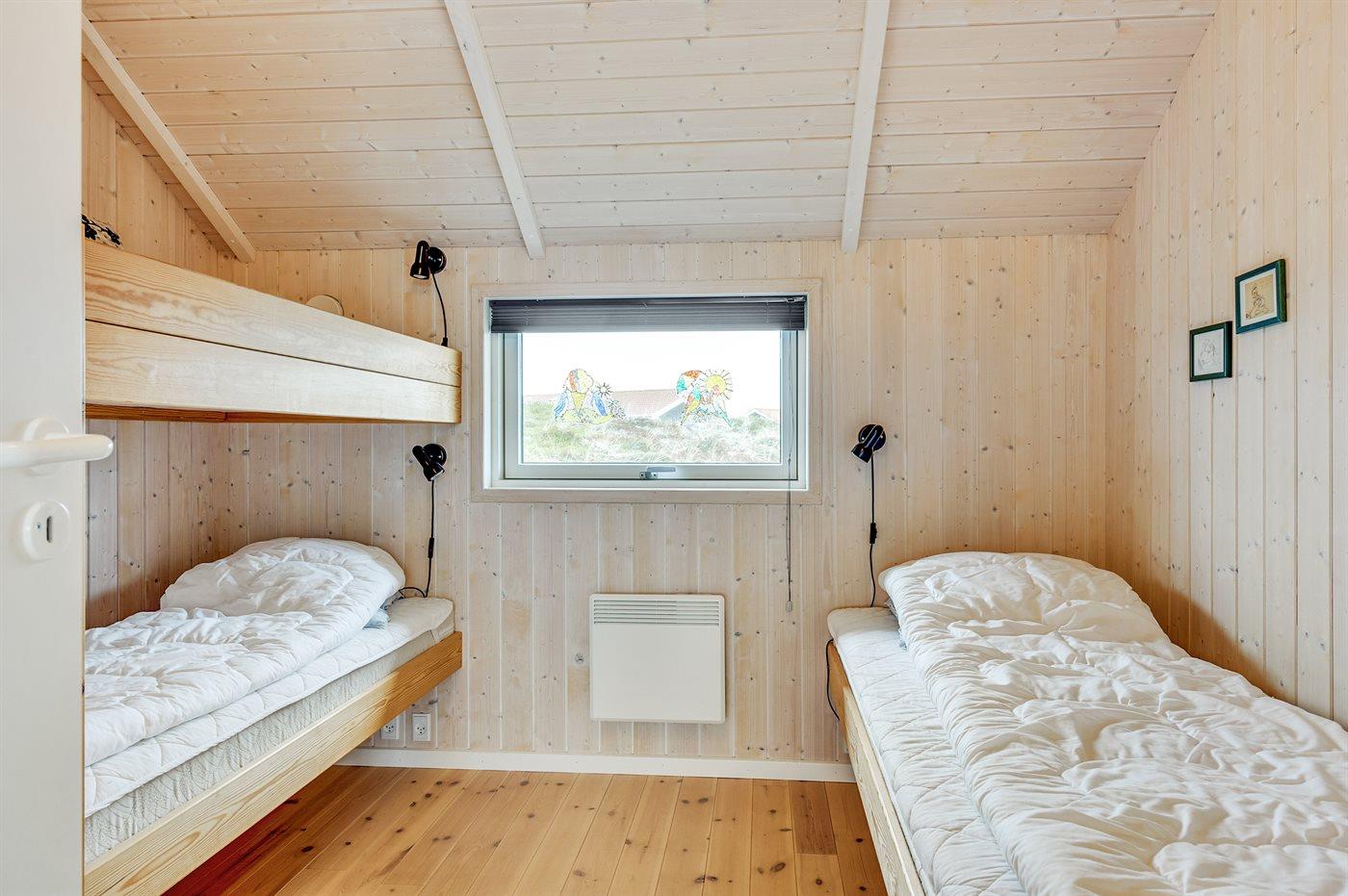 Der er i alt 3 soveværelser. Sovepladserne fordeler sig på: 4 sovepladser i dobbeltsenge. 2 sovepladser i køjeseng.