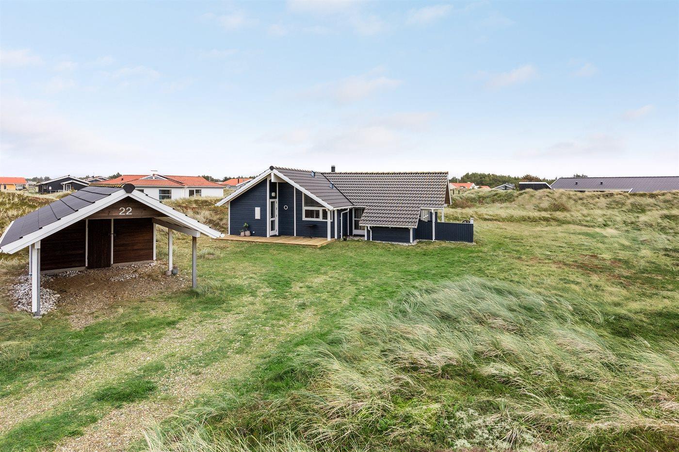 Ferieboligen er beliggende på en 1720 m² stor klitgrund. Der er 550 m til havet. Nærmeste forretning er beliggende i en afstand af 800 m. Til ferieboligen hører 57 m² terrasseareal. Desuden er der 10 m² overdækket terrasse. Parkering ved ferieboligen.