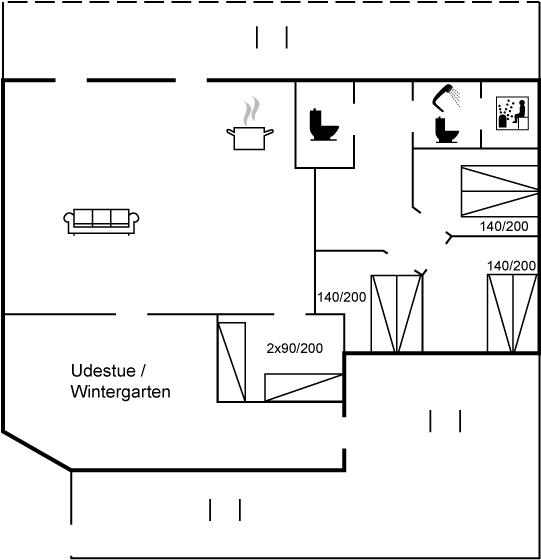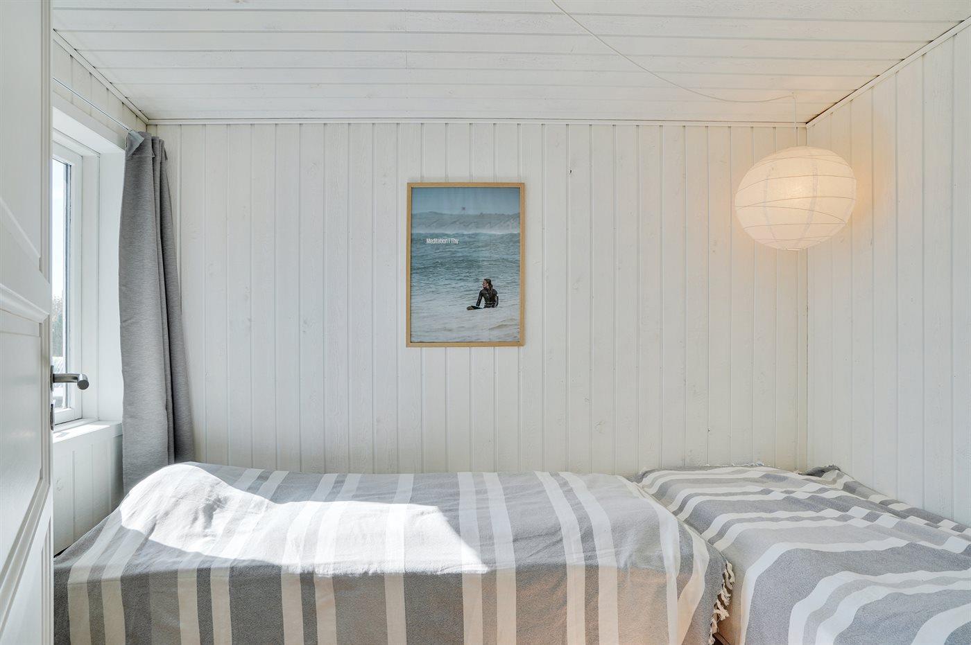 Der er i alt 4 soveværelser. Sovepladserne fordeler sig på: 6 sovepladser i dobbeltsenge. 2 sovepladser i enkeltsenge.