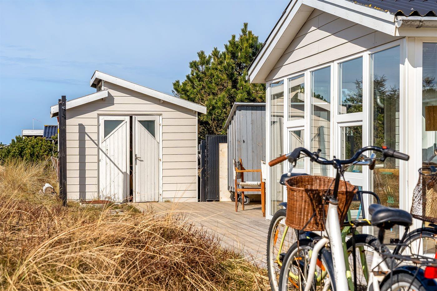 Ferieboligen er beliggende på en 1200 m² stor naturgrund. Der er 800 m til havet. Nærmeste forretning er beliggende i en afstand af 800 m. Til ferieboligen hører 30 m² terrasseareal. Ligeledes er der adgang til udestue. Der er redskabsrum. Shelter. Udendørs bruser. Parkering ved ferieboligen.