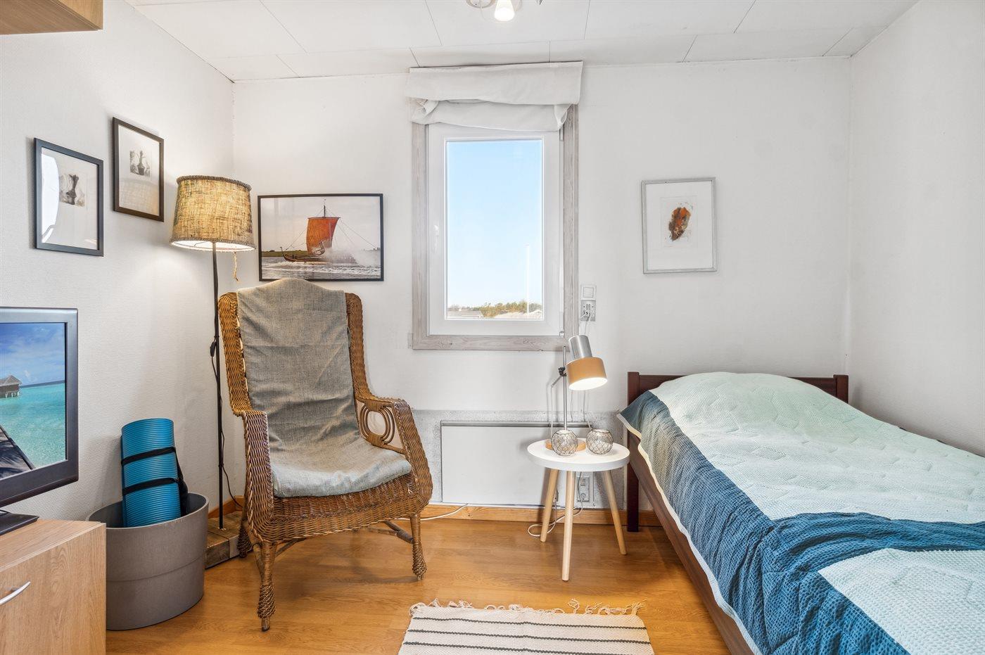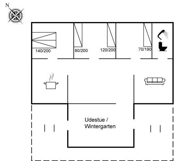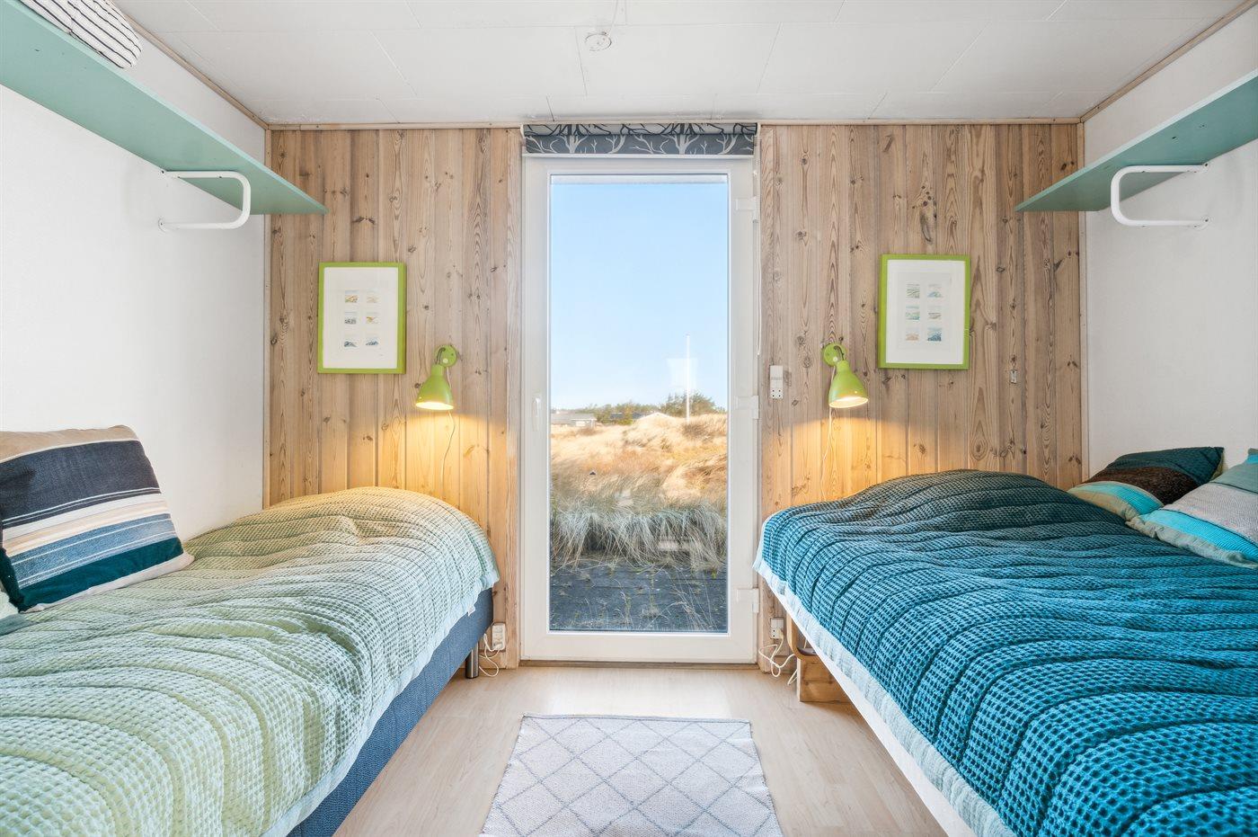 Der er i alt 3 soveværelser. Sovepladserne fordeler sig på: 2 sovepladser i dobbeltseng. 3 sovepladser i enkeltsenge.
