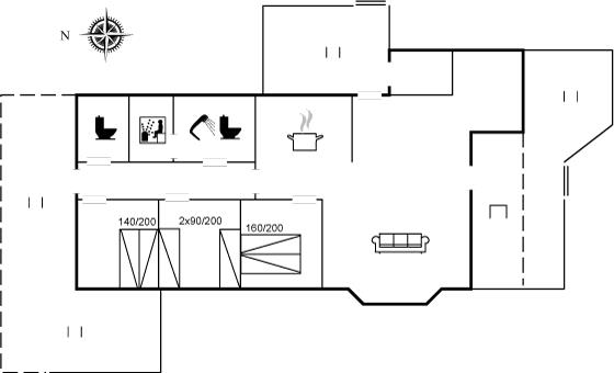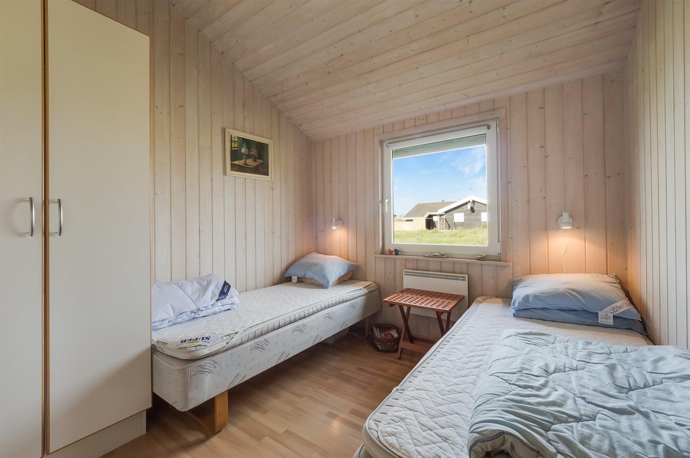 Der er i alt 3 soveværelser. Sovepladserne fordeler sig på: 4 sovepladser i dobbeltsenge. 2 sovepladser i enkeltsenge.
