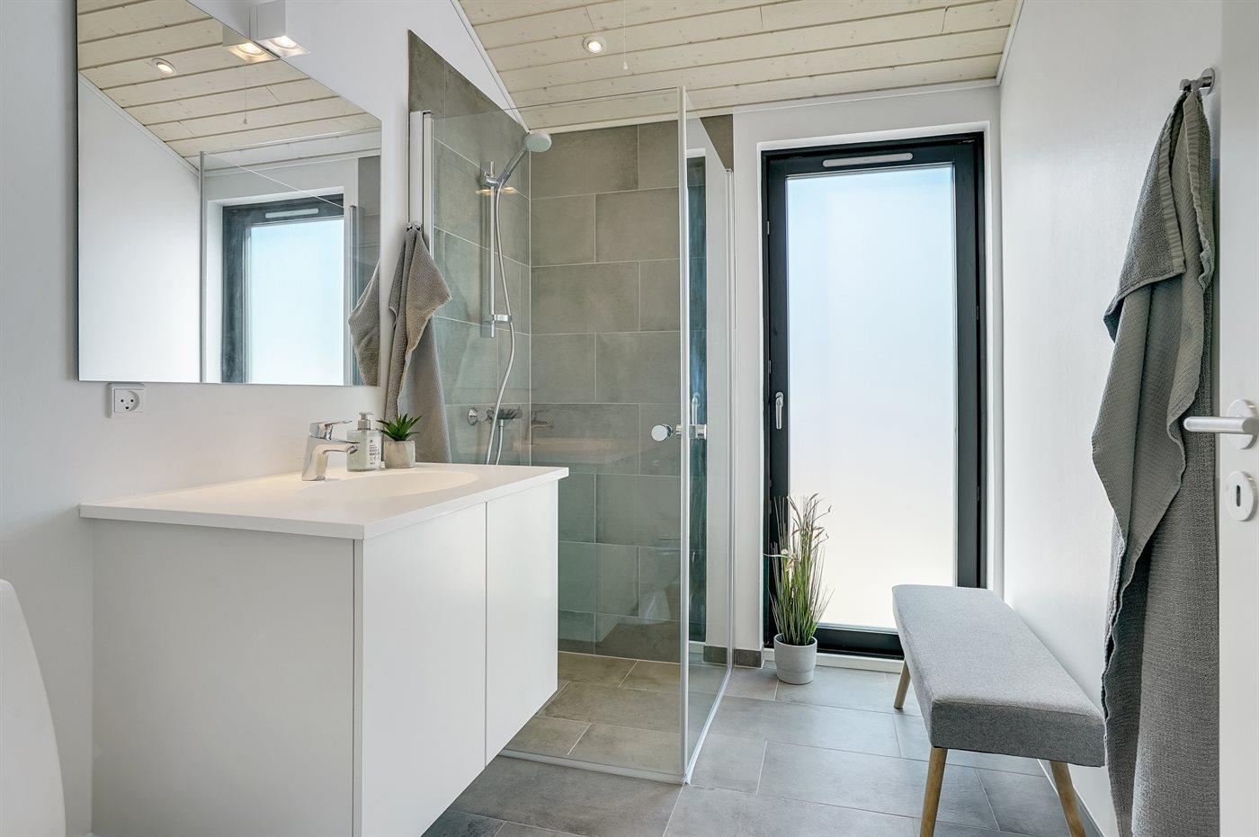 Der er 2 badeværelser med bruseniche og 2 toiletter. Der er gulvvarme på 2 badeværelser. I den udendørs sauna er der mulighed for afslapning.
