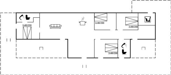 Der er i alt 4 soveværelser. Sovepladserne fordeler sig på: 8 sovepladser i dobbeltsenge. Derudover er der 2 stk. barnesenge.