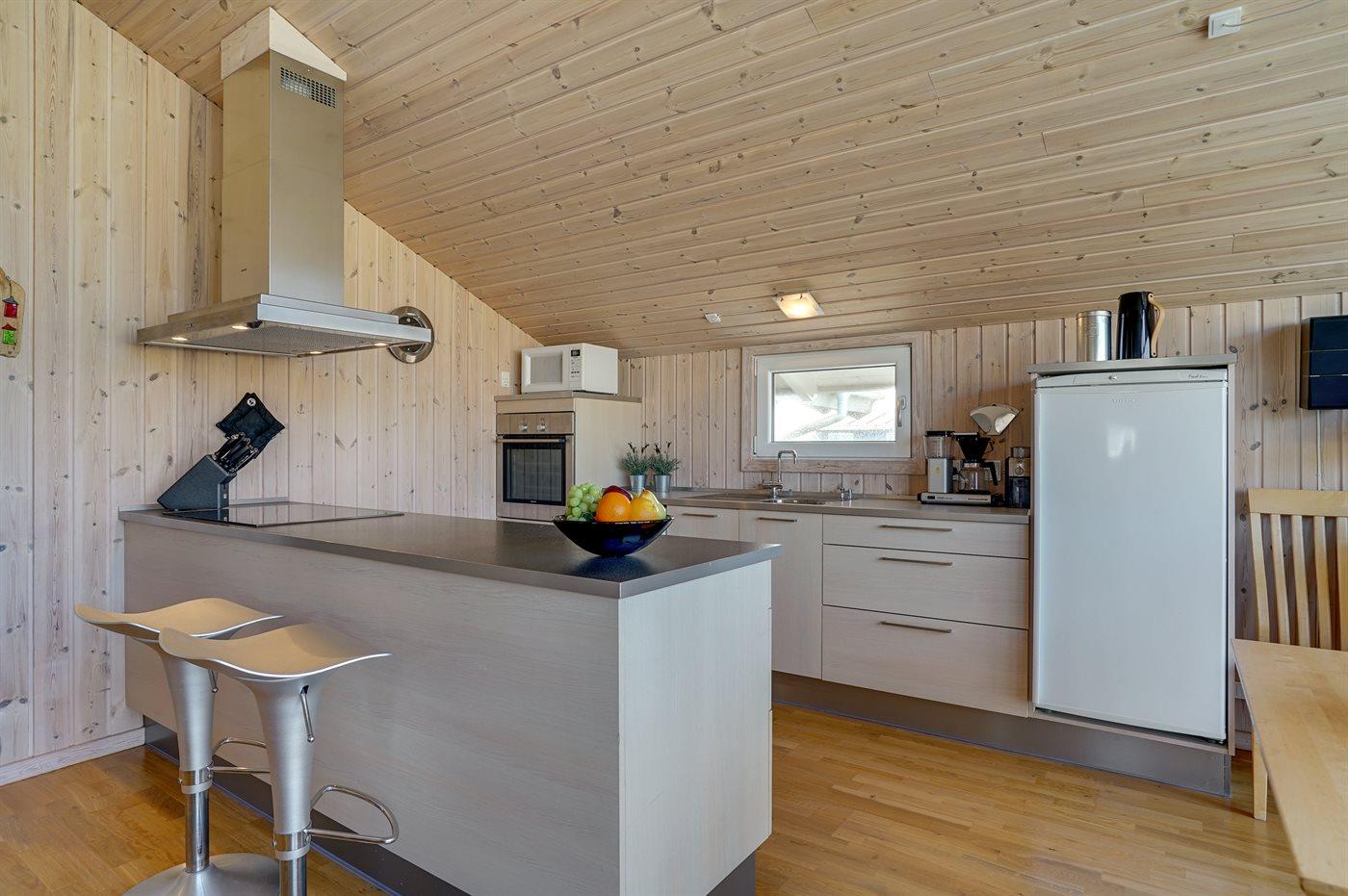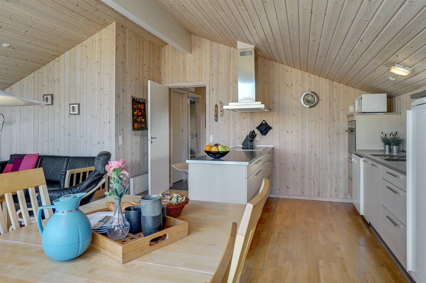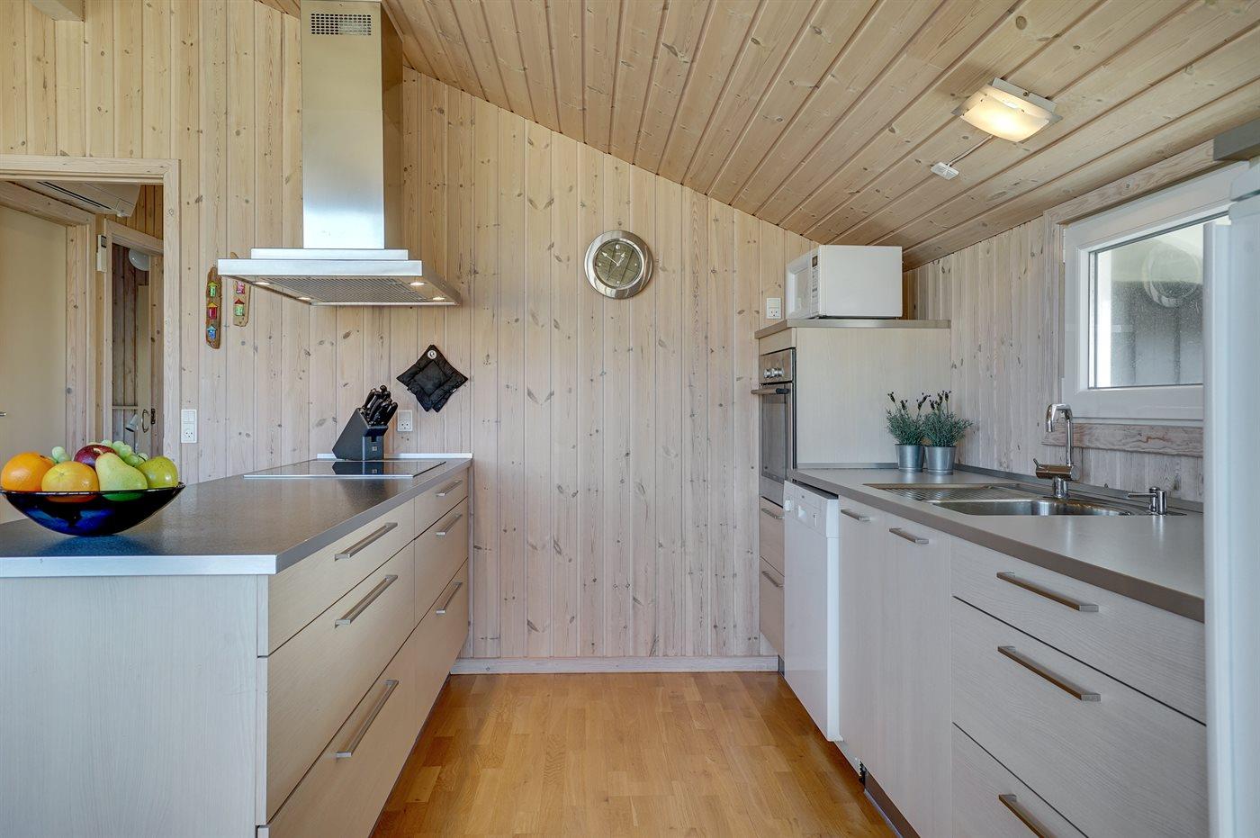 Køkkenet er udstyret med 1 køleskab. Der er 4 keramiske kogeplader, varmluftovn, mikrobølgeovn samt opvaskemaskine.