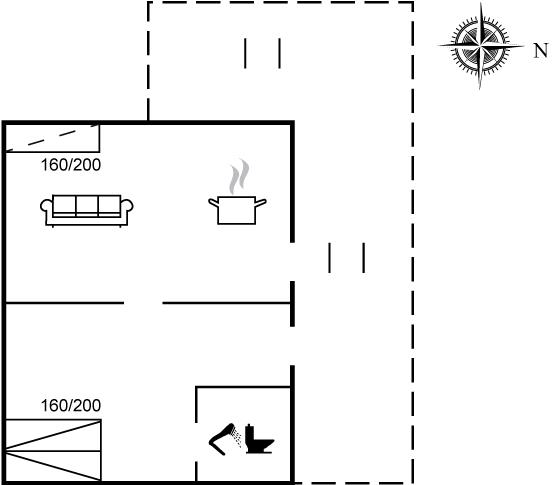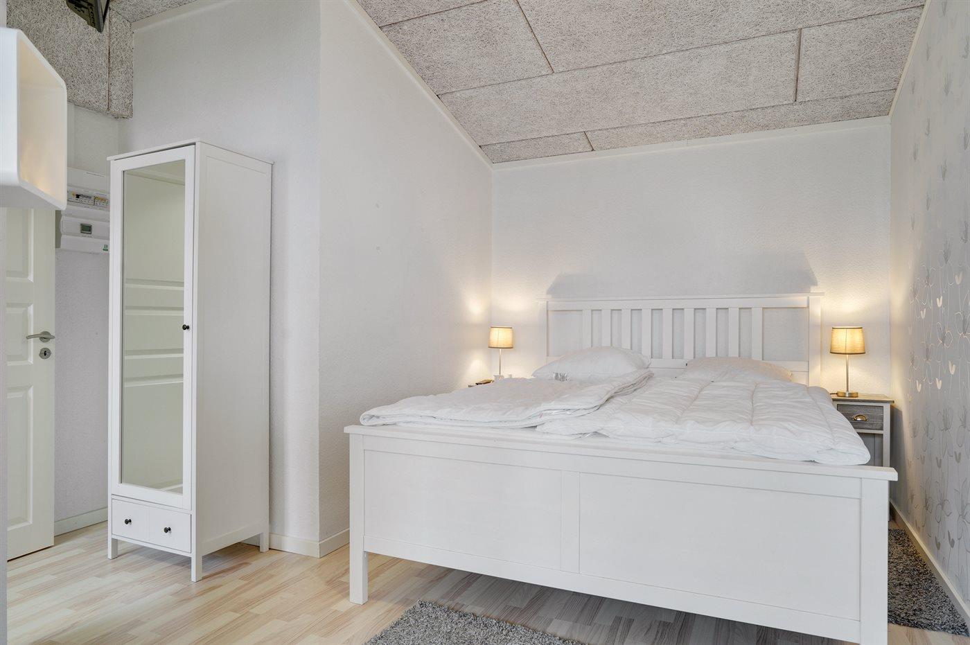 Der er i alt 1 soveværelse. Sovepladserne fordeler sig på: 2 sovepladser i dobbeltseng. 1 soveplads i sovesofa (enkelt).