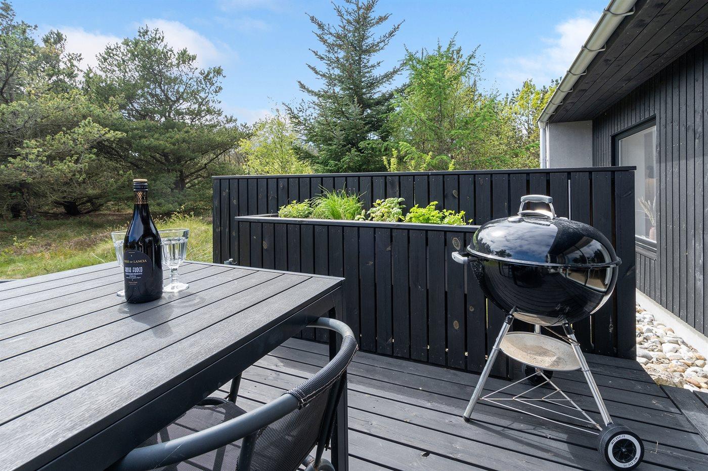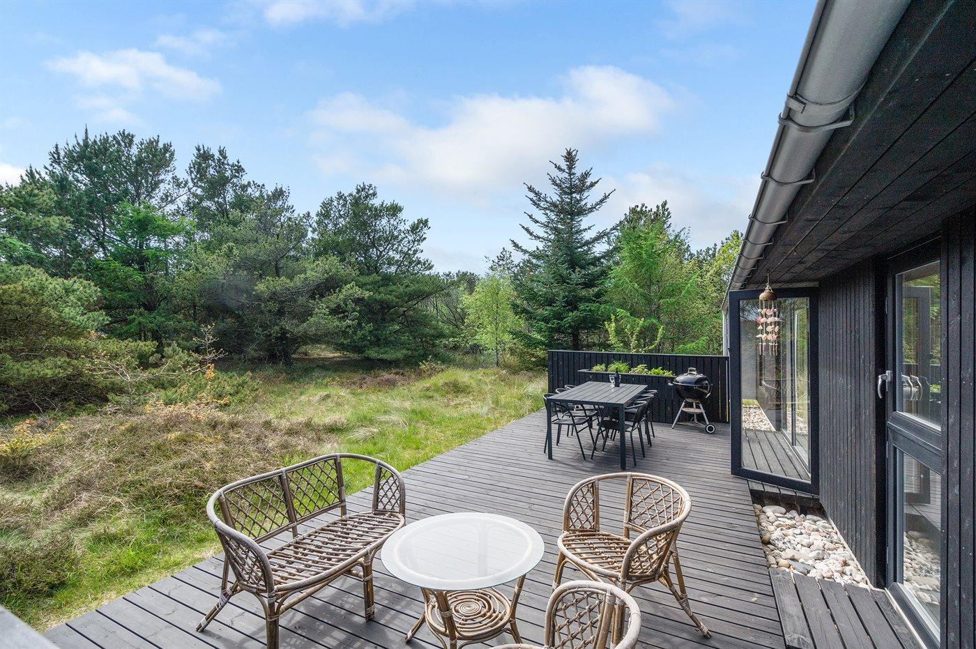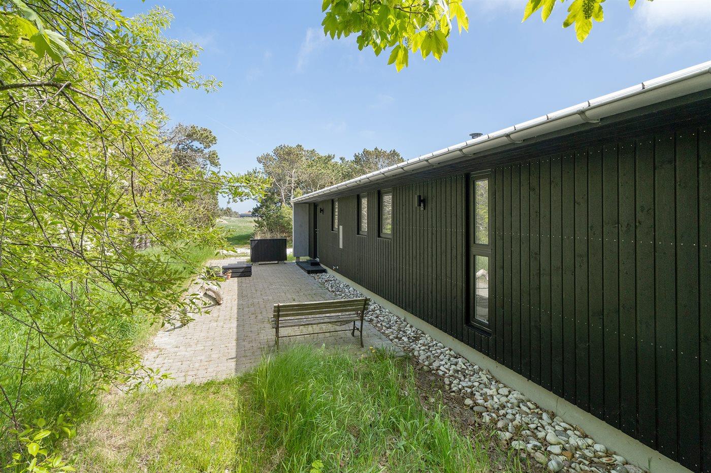 Ferieboligen er beliggende på en 2450 m² stor naturgrund. Der er 800 m til havet. Nærmeste forretning er beliggende i en afstand af 1000 m. Der er en golfbane i en afstand af 5000 m. Til ferieboligen hører 30 m² terrasseareal. Trampolin. Der ligger en legeplads i en afstand af 500 m. Grill til rådighed. Der er installeret stik til opladning af elbil. Med 11 kW ladeeffekt. Parkering ved ferieboligen.