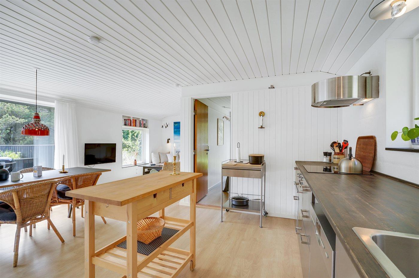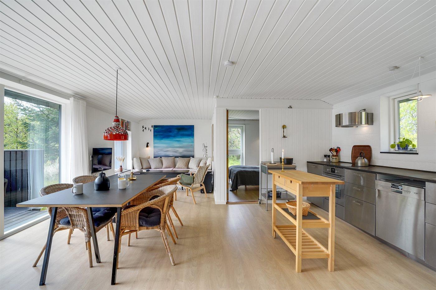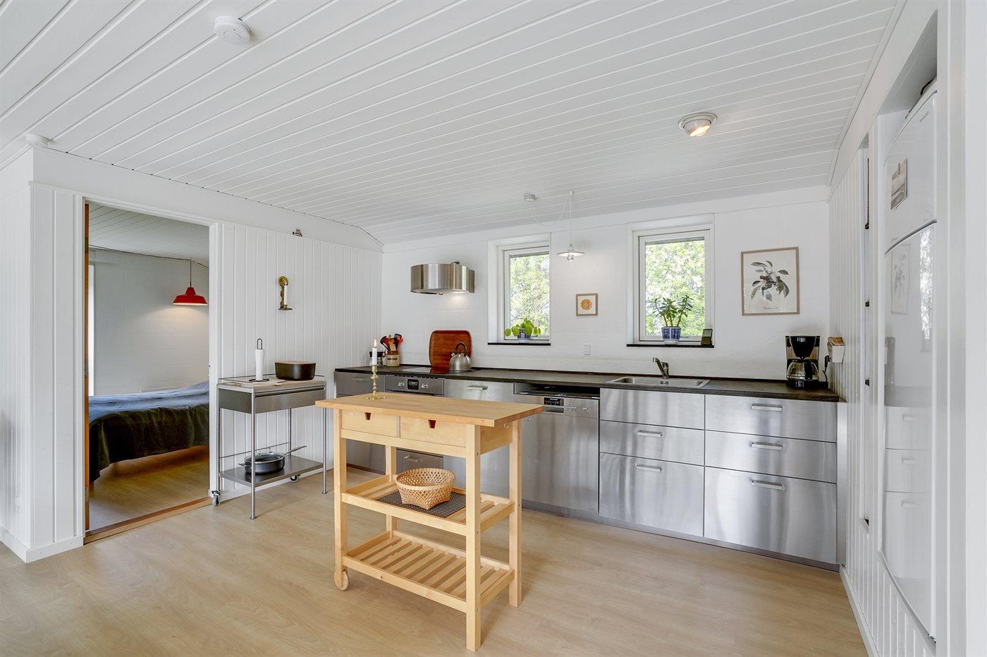 Køkkenet er udstyret med 1 køleskab. Der er 4 induktionskogeplader, varmluftovn samt opvaskemaskine.