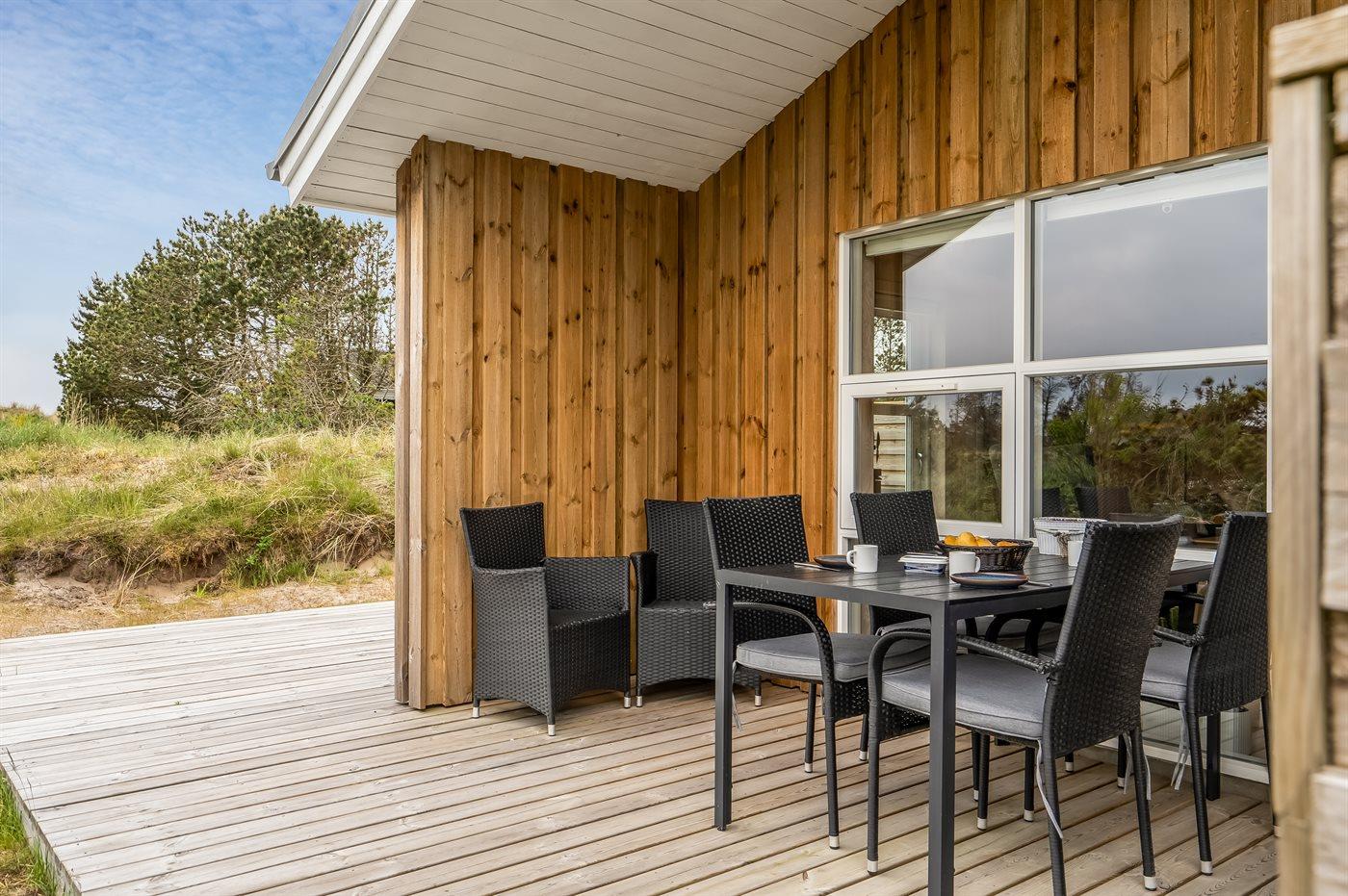 Et flot, nybygget sommerhus beliggende i et roligt område i Klitmøller. Huset er hyggeligt indrettet og holdt i lyse farver. Nyd udelivet på de dejlige og delvist overdækkede terrasser med gode læmuligheder.