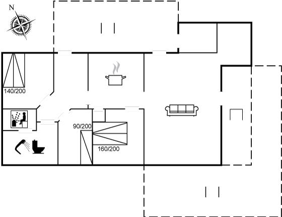 Der er i alt 3 soveværelser. Sovepladserne fordeler sig på: 4 sovepladser i dobbeltsenge. 1 soveplads i enkeltseng.