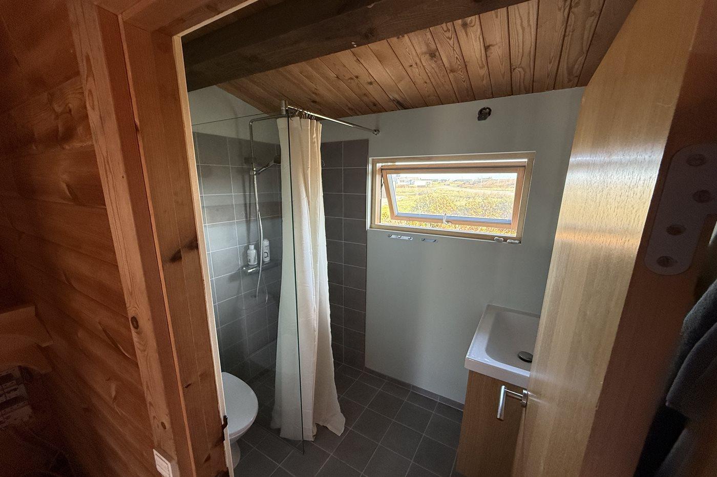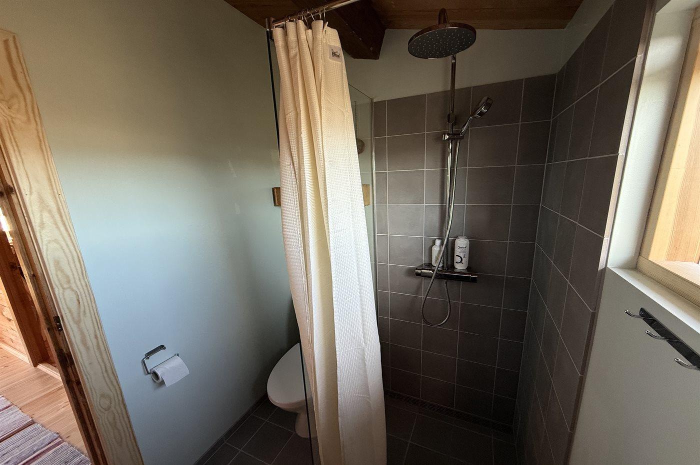 Der er 1 badeværelse med bruseniche og 1 toilet.