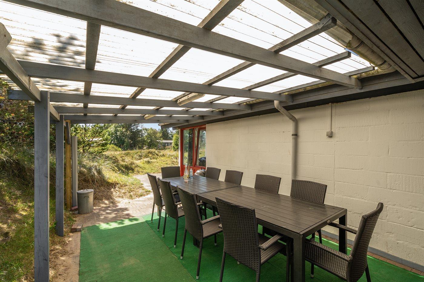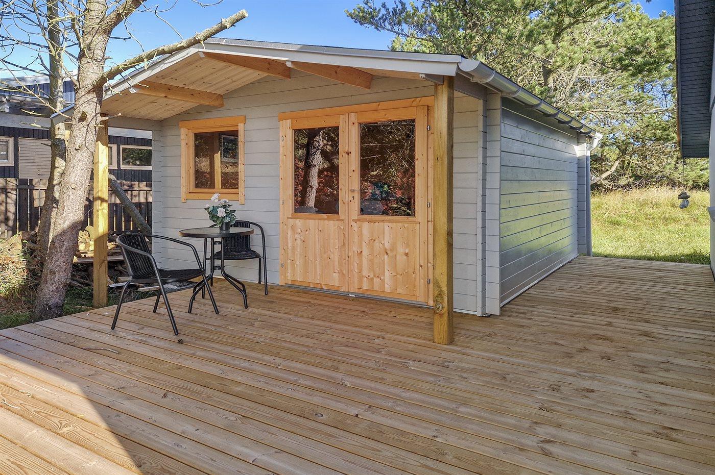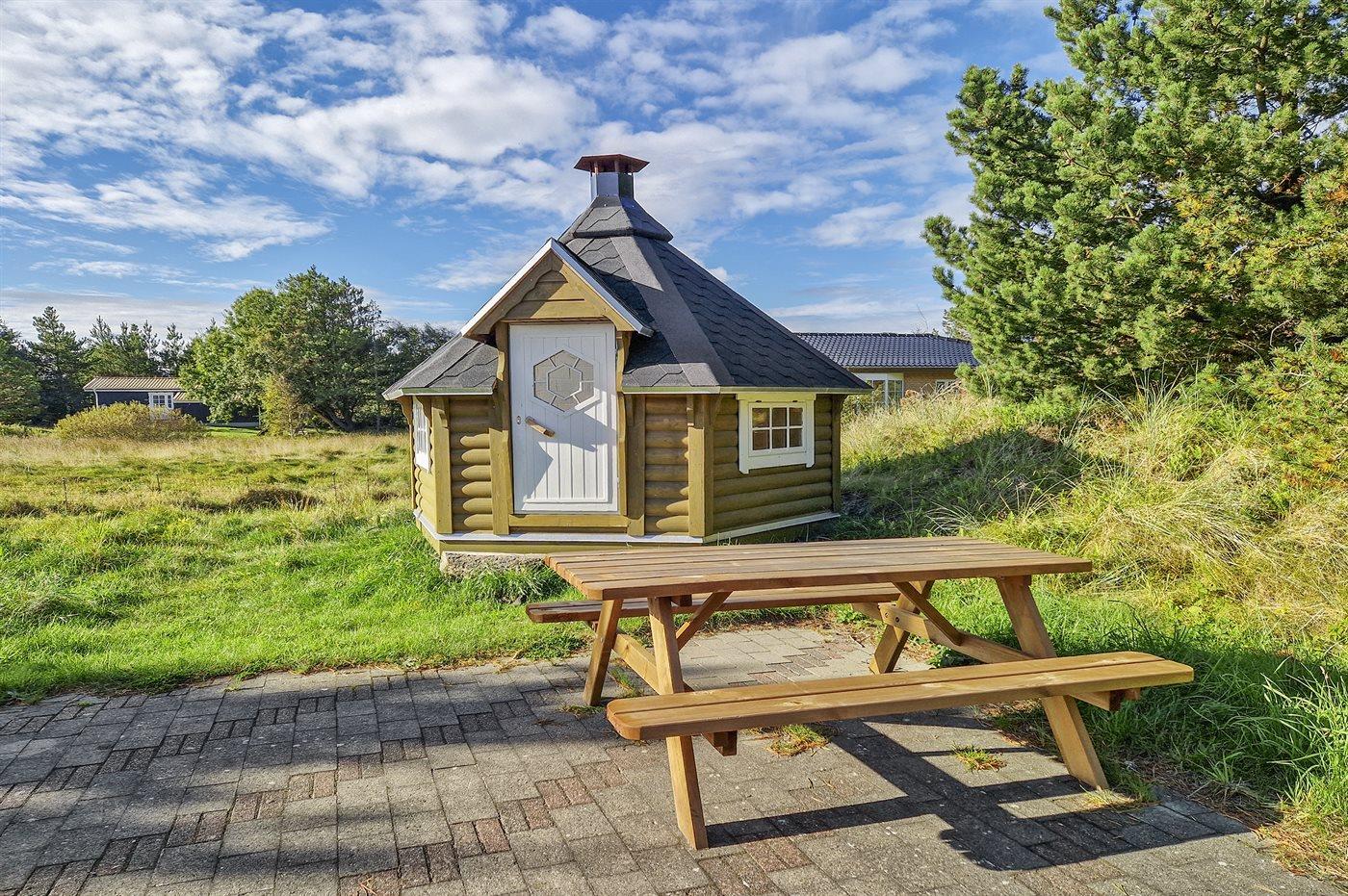 Ferieboligen er beliggende på en 1300 m² stor naturgrund. Der er 900 m til havet. Nærmeste forretning er beliggende i en afstand af 900 m. Til ferieboligen hører åbent og overdækket terrasseareal. Sandkasse. Bålsted. Grill til rådighed. Parkering ved ferieboligen.