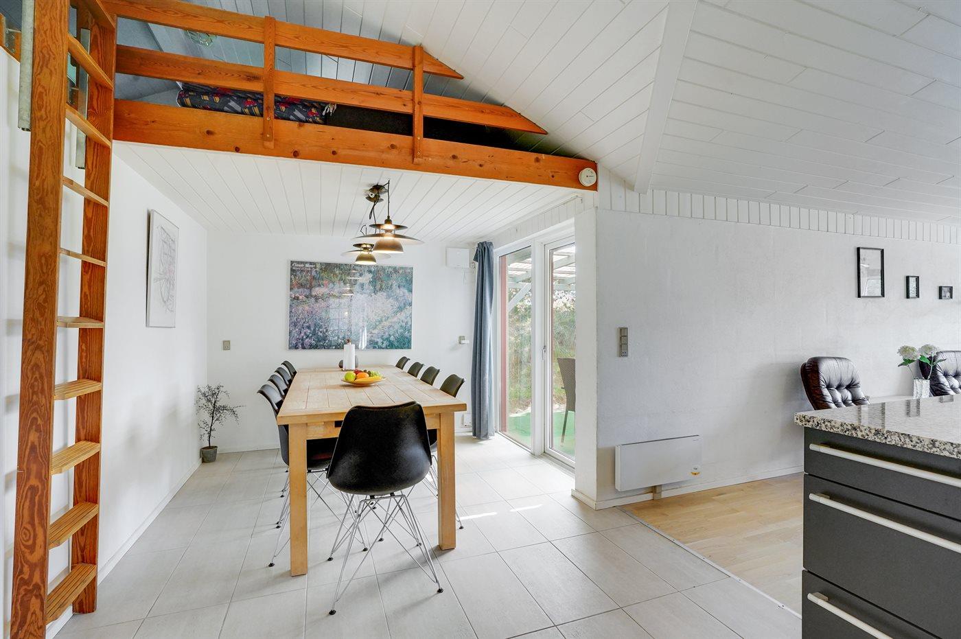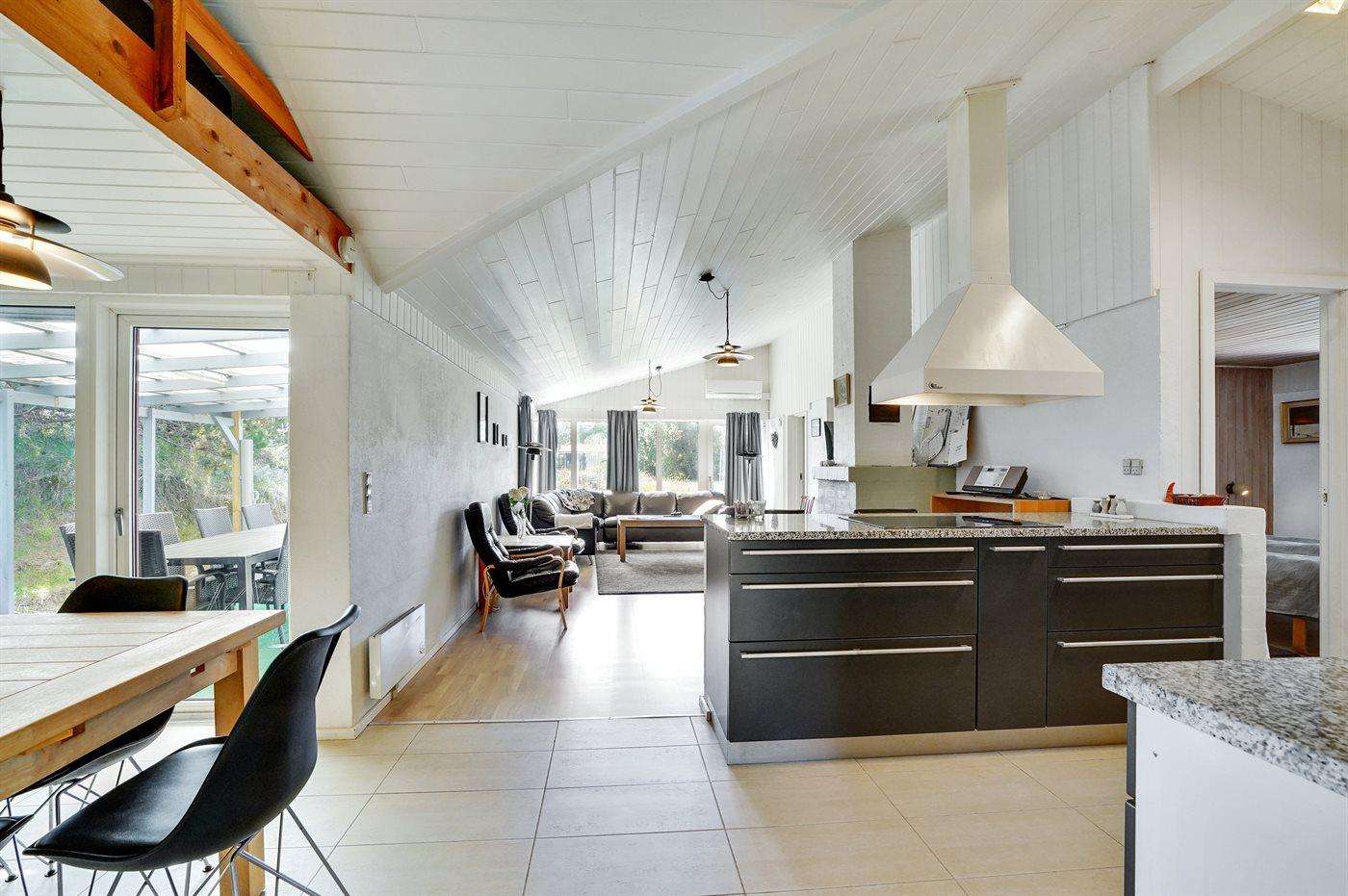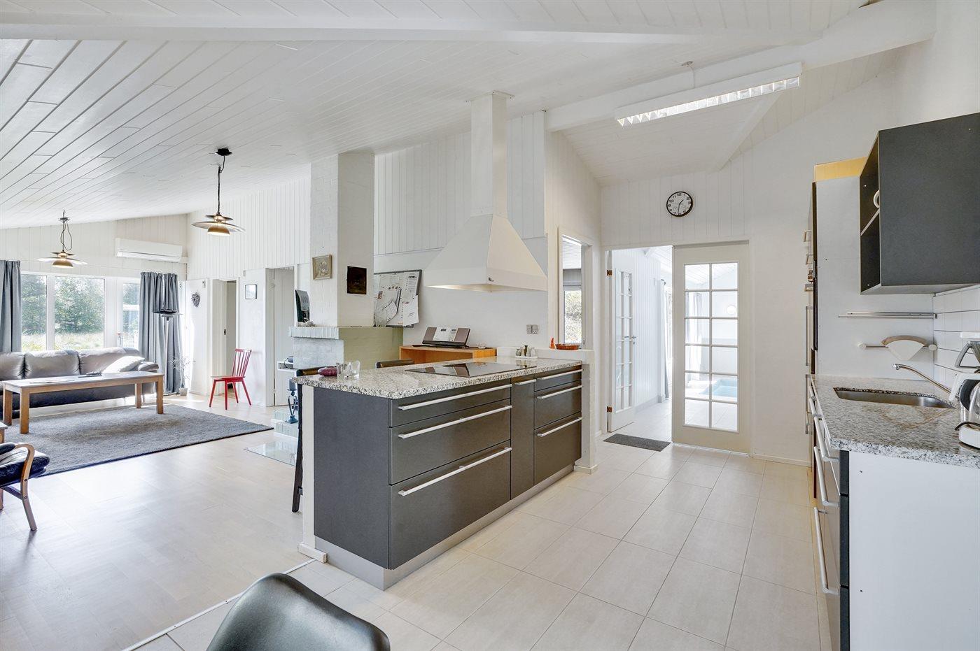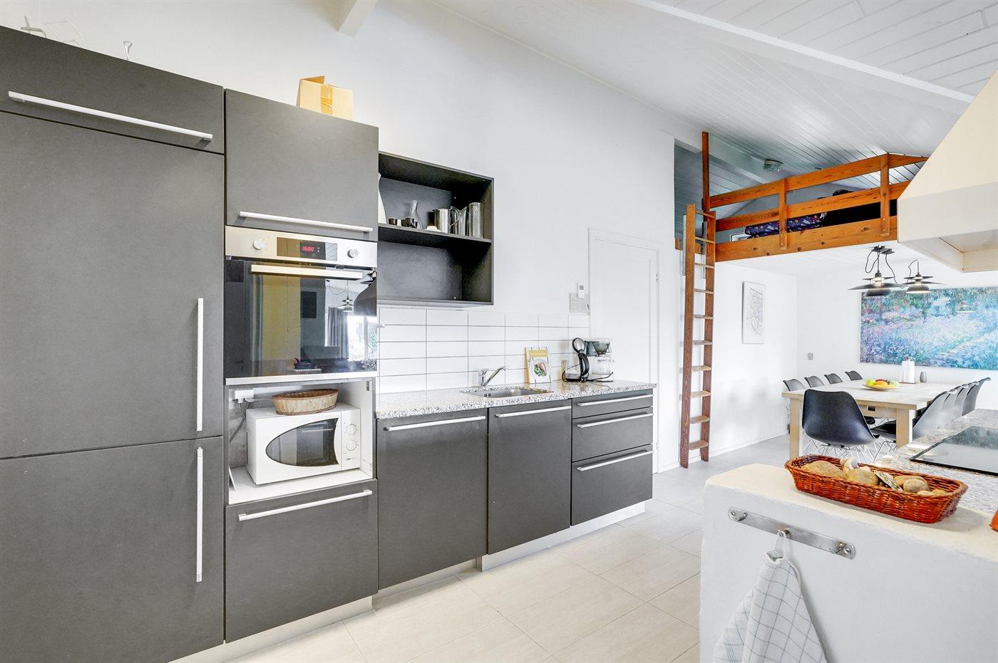 Køkkenet er udstyret med 1 køleskab. Der er 4 induktionskogeplader, varmluftovn, mikrobølgeovn samt opvaskemaskine.