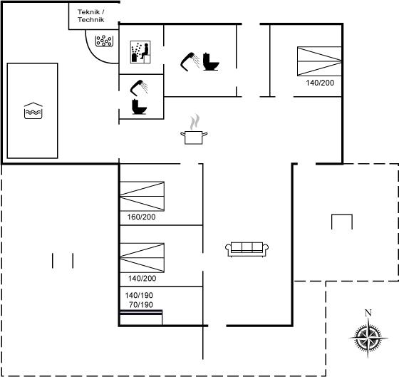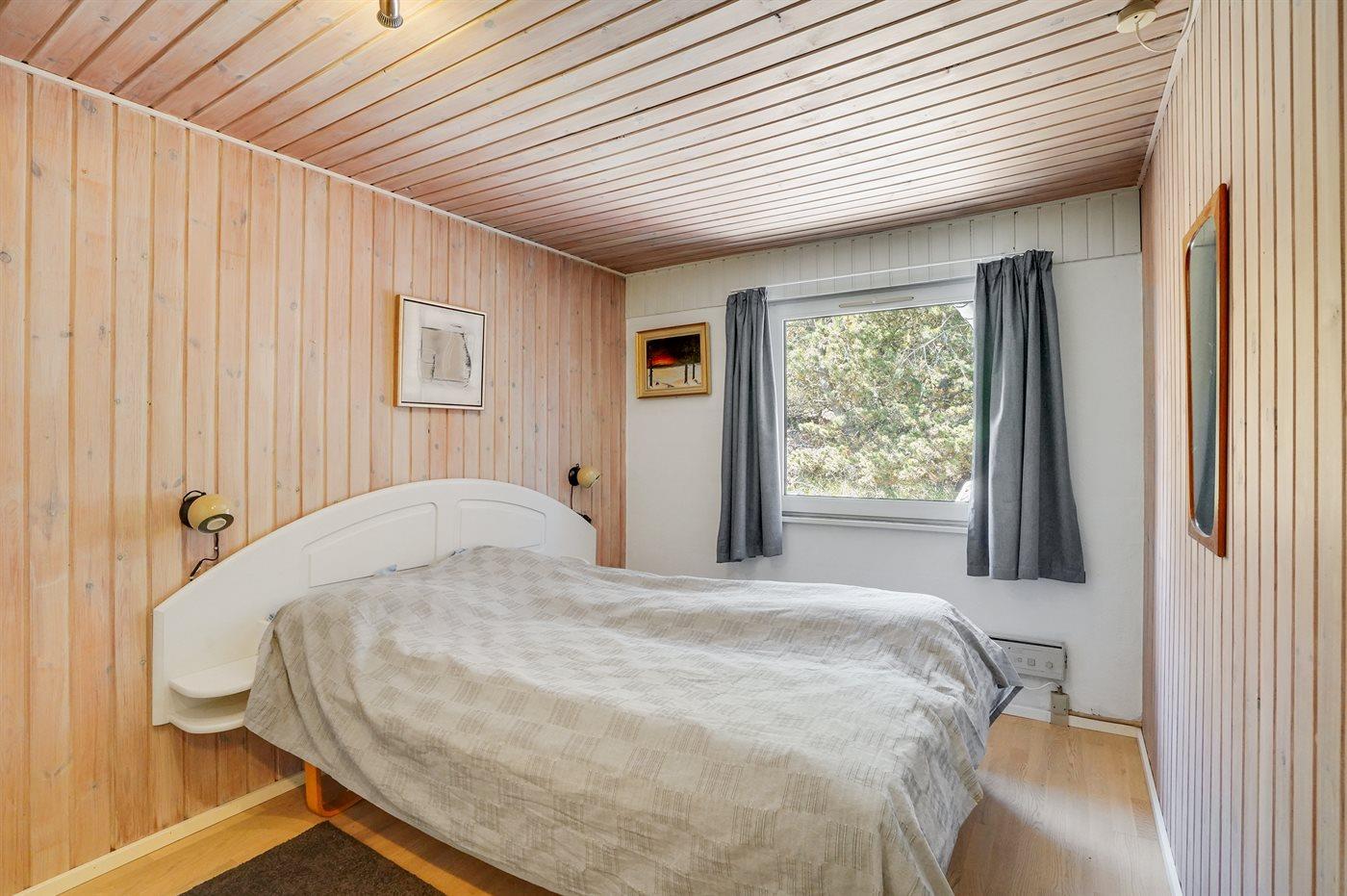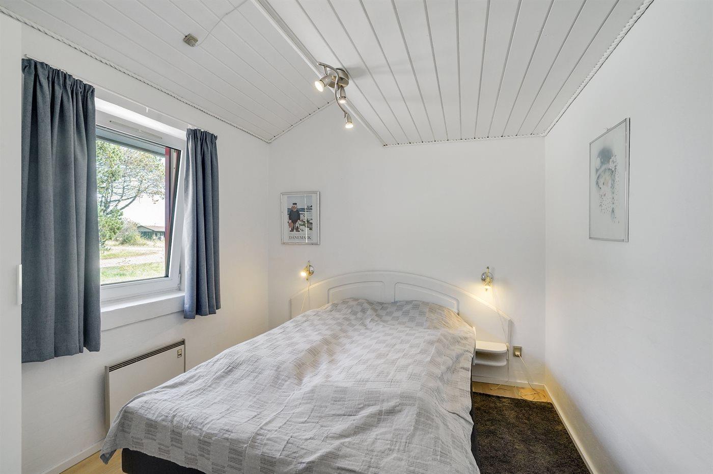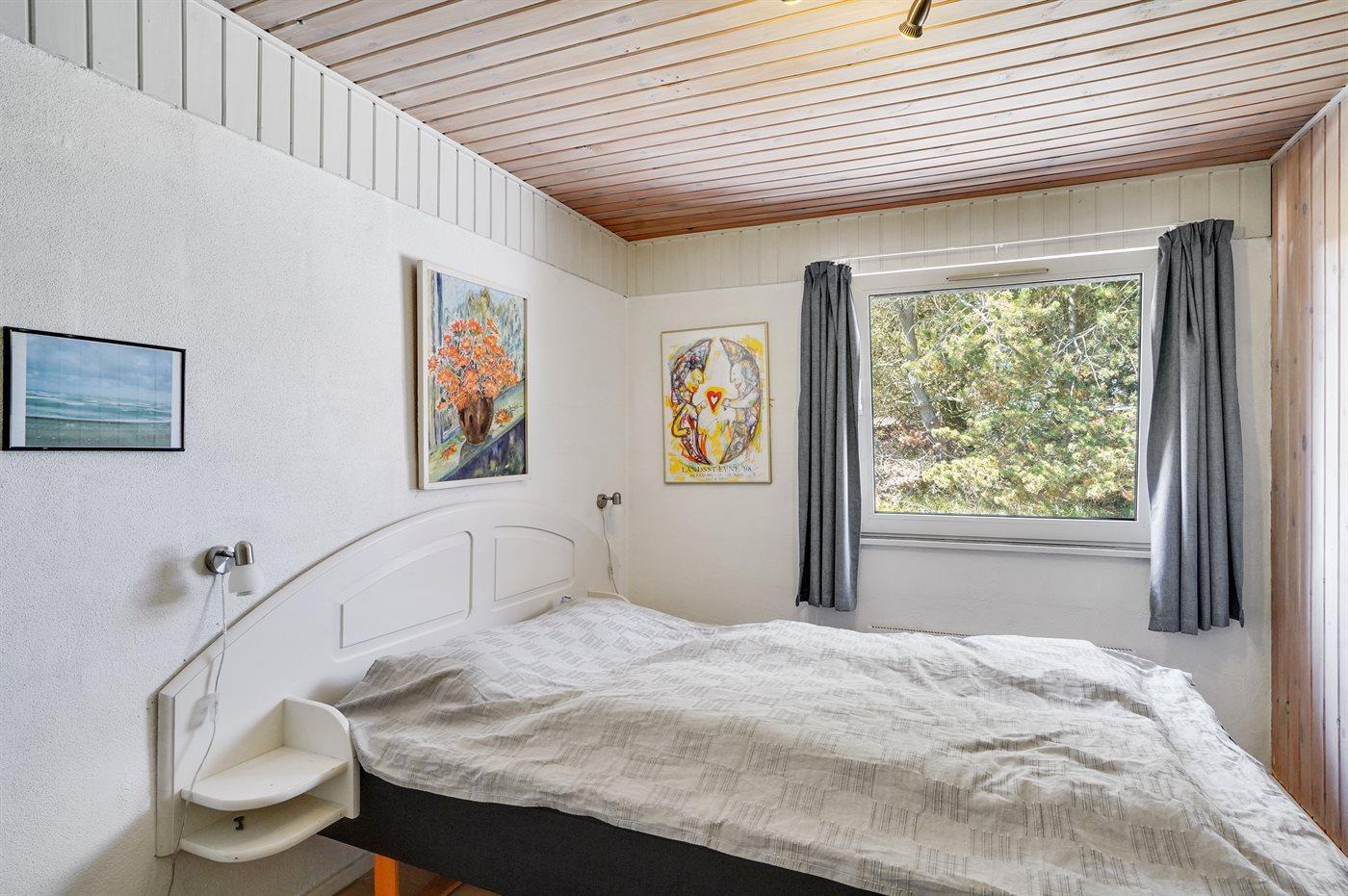 Der er i alt 4 soveværelser. Sovepladserne fordeler sig på: 6 sovepladser i dobbeltsenge. 2 sovepladser i køjeseng. 2 sovepladser på madrasser. 2 af disse sovepladser befinder sig på husets hems. Derudover er der 1 stk. barneseng.