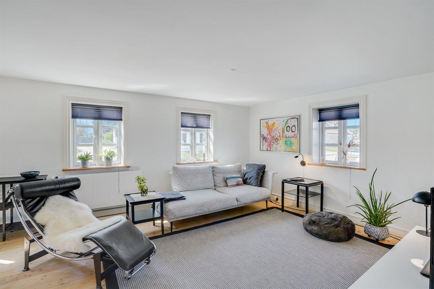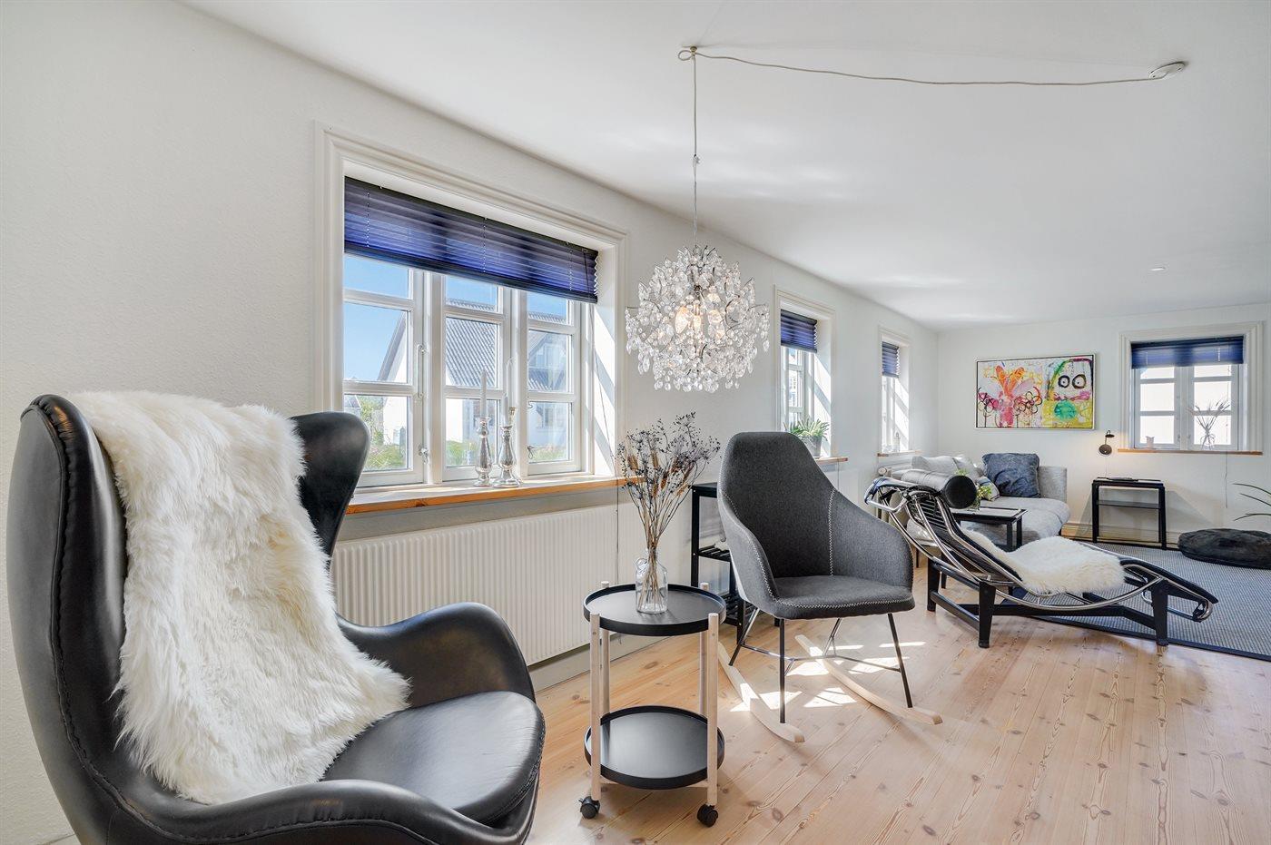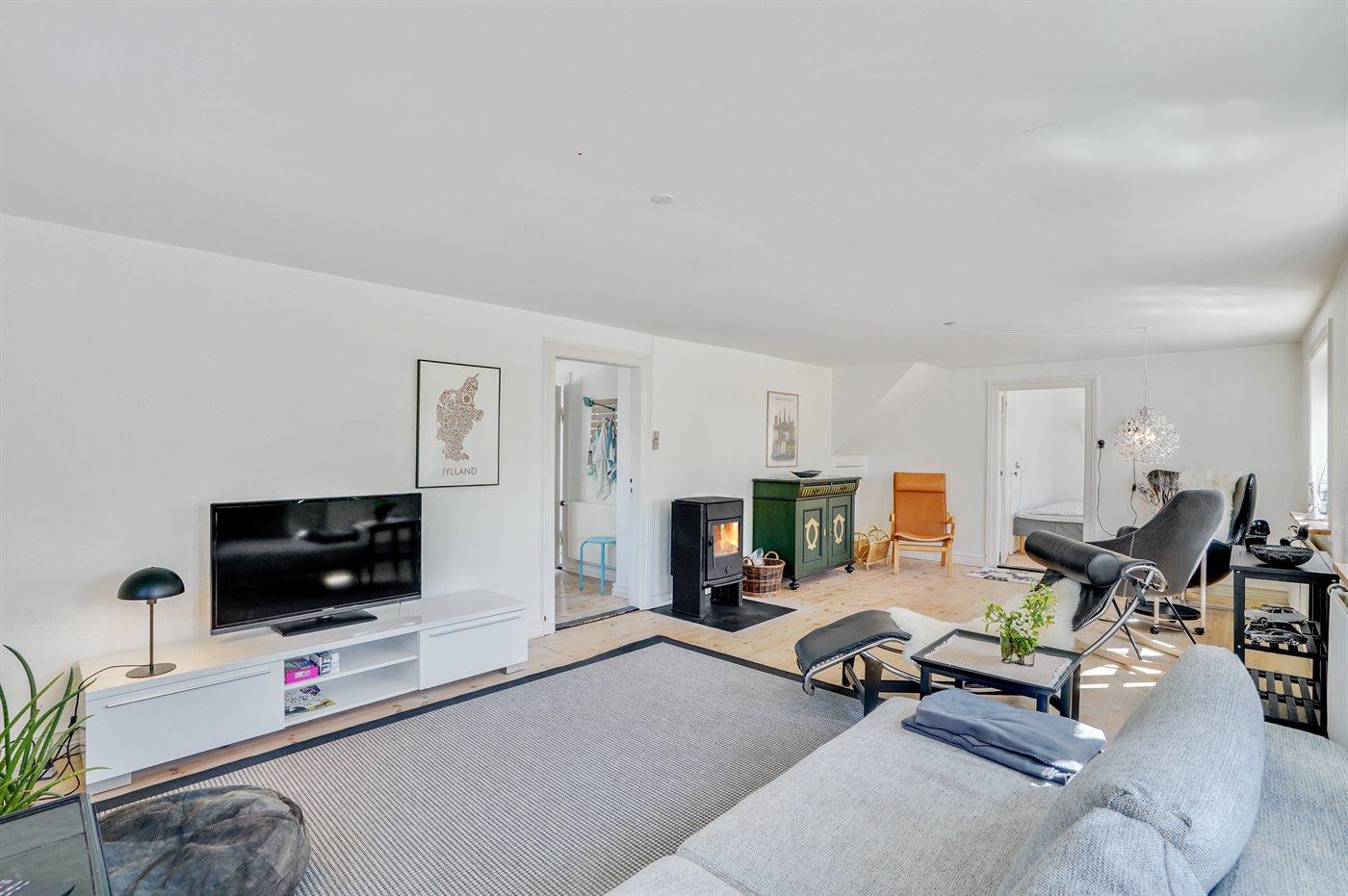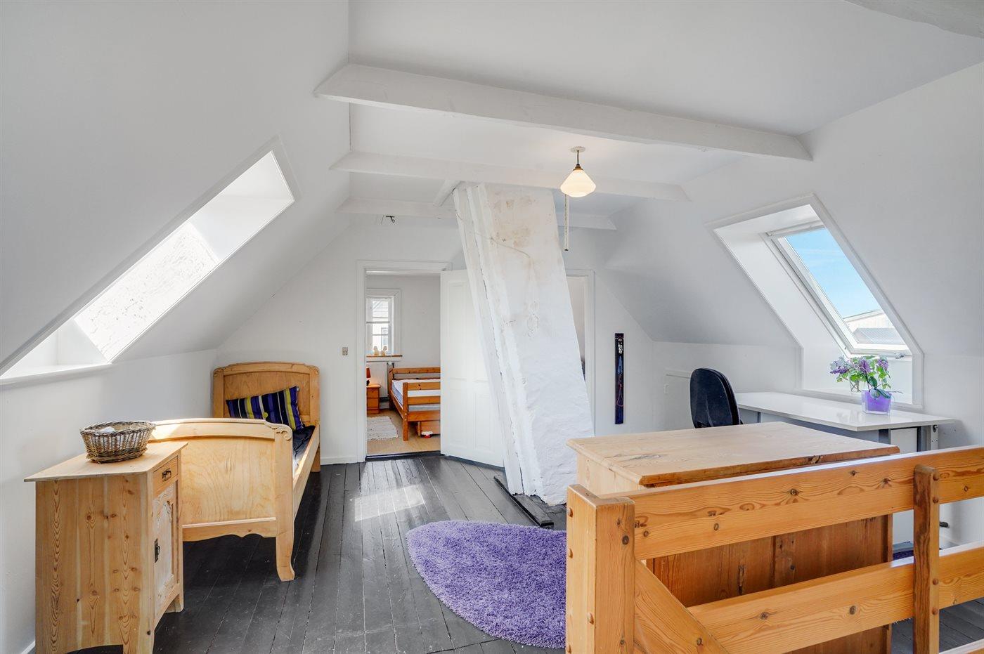 Der er i alt 3 soveværelser. Sovepladserne fordeler sig på: 4 sovepladser i dobbeltsenge. 2 sovepladser i enkeltsenge.