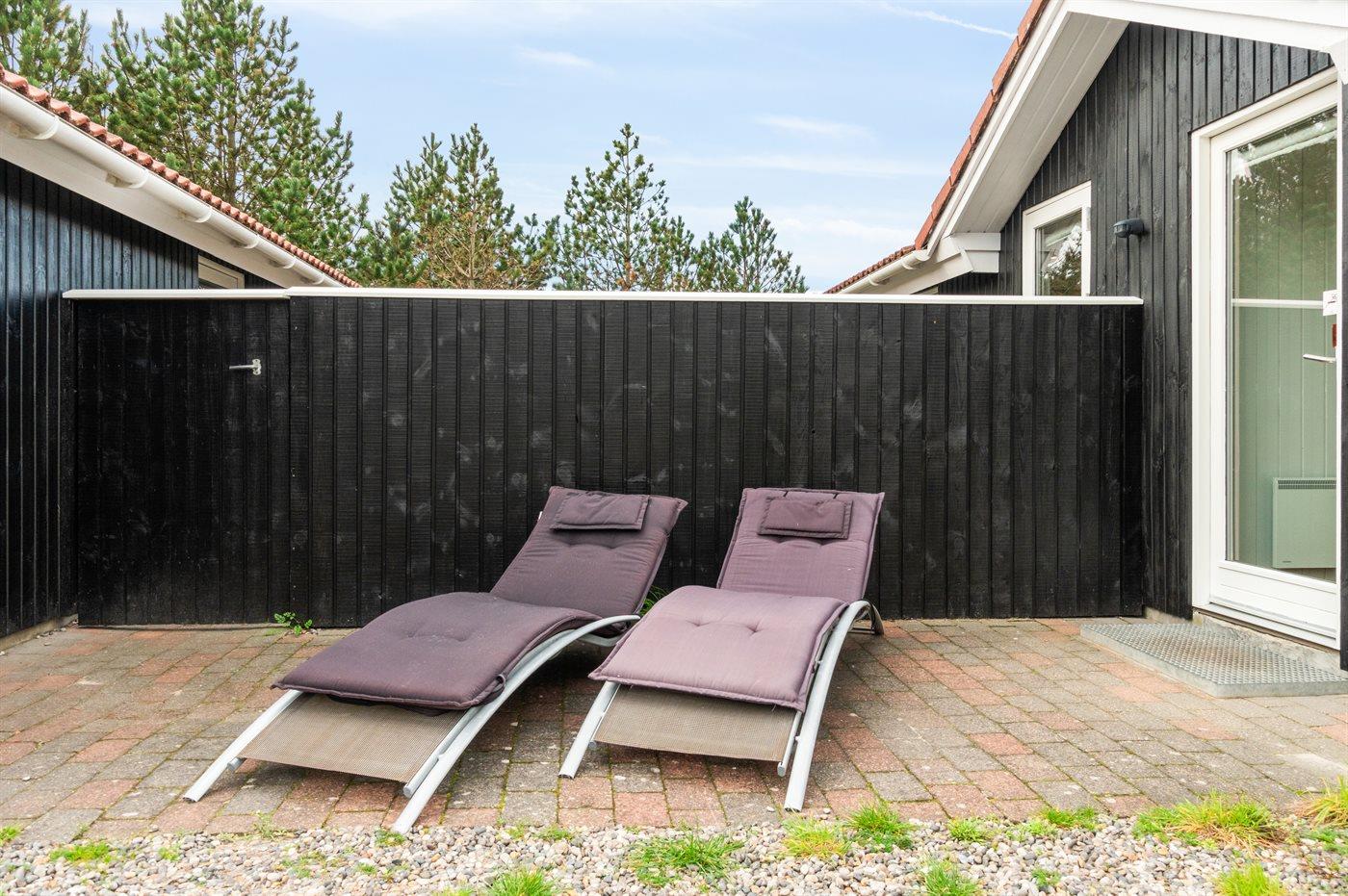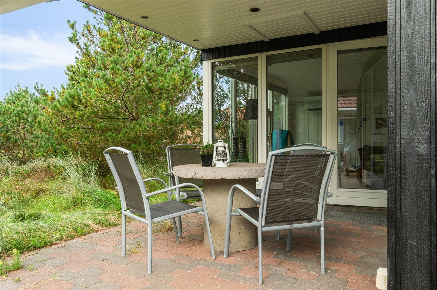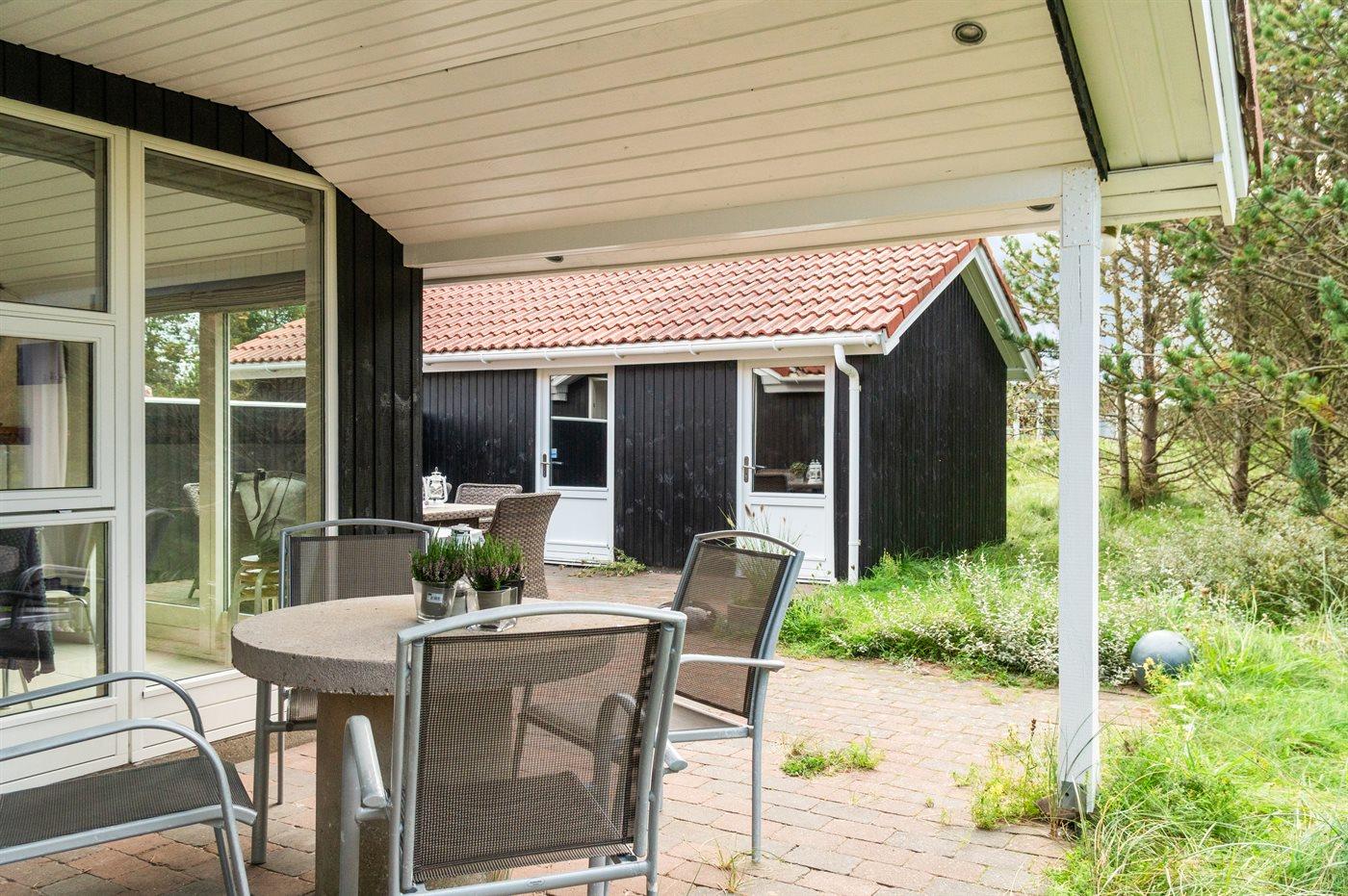 Ferieboligen er beliggende på en 1700 m² stor naturgrund. Der er 700 m til havet. Nærmeste forretning er beliggende i en afstand af 700 m. Der er en golfbane i en afstand af 5000 m. Til ferieboligen hører 30 m² terrasseareal. Desuden er der 10 m² overdækket terrasse. Der er redskabsrum. Grill til rådighed. Parkering ved ferieboligen.