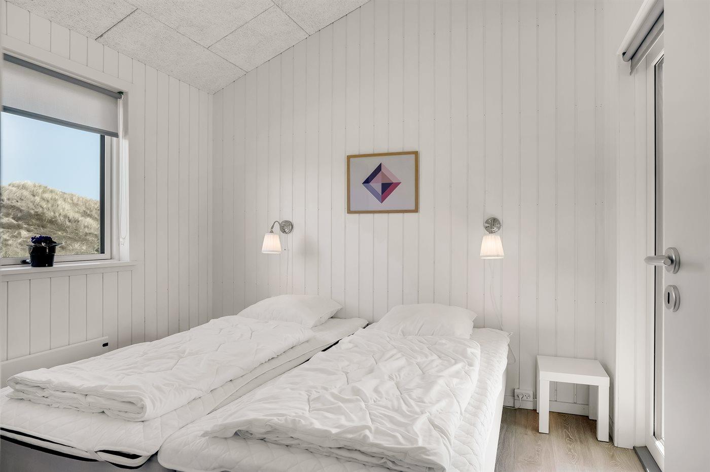 Der er i alt 3 soveværelser. Sovepladserne fordeler sig på: 6 sovepladser i enkeltsenge. Derudover er der 1 stk. barneseng.