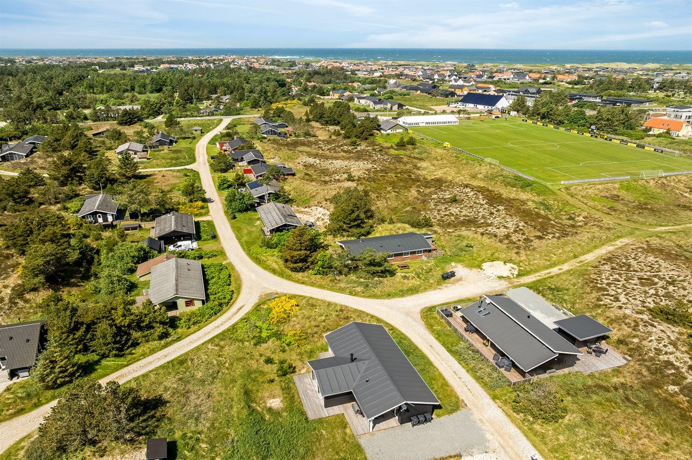 Ferieboligen er beliggende på en 400 m² stor naturgrund. Der er 950 m til havet. Nærmeste forretning er beliggende i en afstand af 950 m. Til ferieboligen hører 80 m² terrasseareal. Desuden er der 35 m² overdækket terrasse. Grill til rådighed. Der er installeret stik til opladning af elbil. CEE stik. Med 10 kW ladeeffekt. Parkering ved ferieboligen.