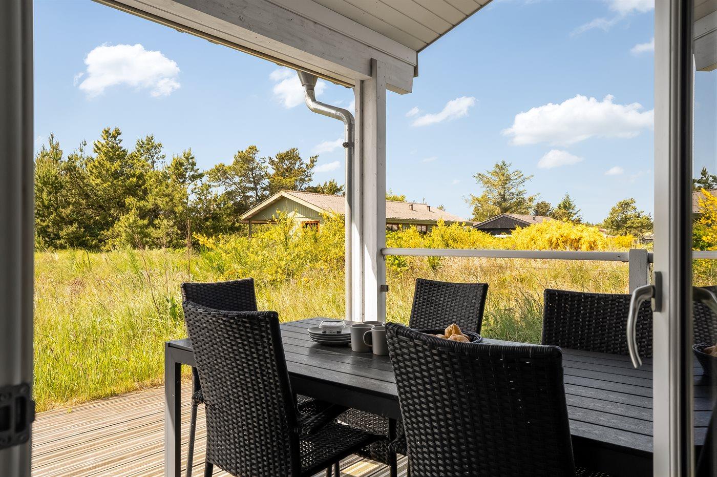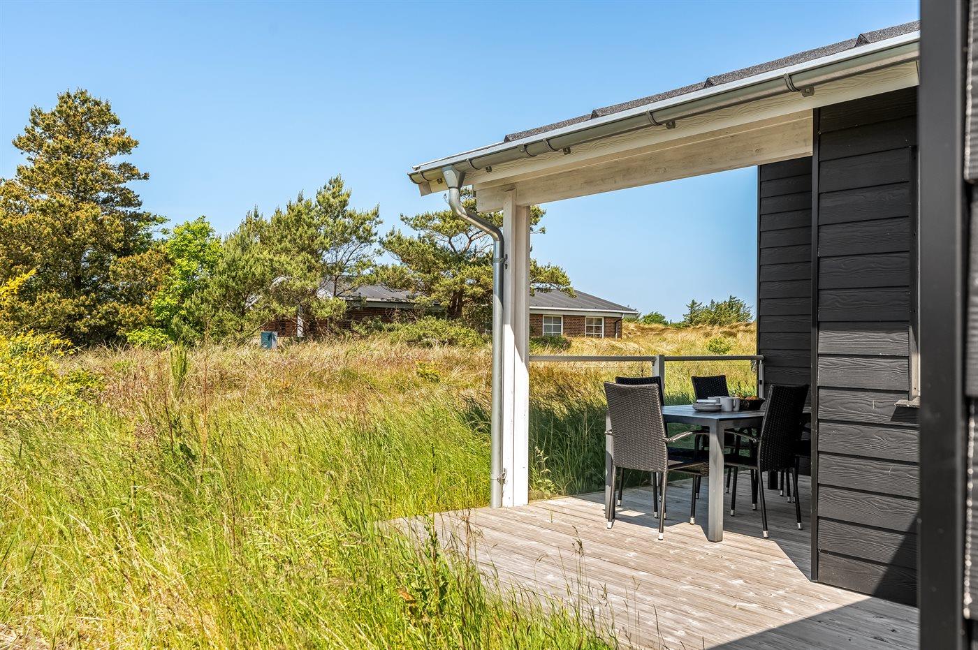 I et roligt sommerhusområde i Klitmøller ligger dette flotte, nyopførte sommerhuset, som er indrettet i nordisk stil holdt i lyse farver. Til huset hører en dejlig og til dels overdækket terrasse med gode læmuligheder.